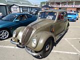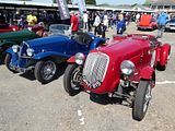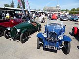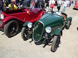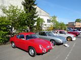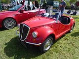 Oldest Fiats here were not one, but three examples of the 508 Balila Sport, one with a chunkier body than the other two. The 508 Balilla was a compact car launched in 1932, effectively the replacement of the Fiat 509, although production of the earlier model had ceased back in 1929. It had a three-speed transmission (increased to four in 1934), seated four, and had a top speed of about 50 mph (80 km/h). It sold for 10,800 lire (or 8,300 2005 euro). About 113,000 were produced. It was offered with a number of different body styles. Most of them were family saloons, but Fiat also offered a series of sporting bodies for the car, and that is what was seen here, complete with cycle-wings. The first 508 came with a front-mounted four cylinder petrol/gasline side-valve engine of 995cc. Maximum power was listed as 20 hp at 3500 rpm, providing for a top speed of approximately 80 km/h (50 mph). Power passed to the rear wheels through a 3-speed manual gear box without the assistance of synchromesh on any of the ratios. Stopping power was provided by drum brakes on all four wheels. At the end of 1933 power was increased to 24 hp at 3500 rpm, and the maximum speed went up to 85 km/h (53 mph). Transmission was upgraded to a four speed gear box. For 1934 the car now came with a slightly more aerodynamic looking “berlina” (saloon/sedan) body, available with either two or four doors. This version was identified as the Fiat 508B, and the original 1932 model was now, retrospectively, became the Fiat 508A. The first 508A, introduced in 1932, was a 2-door “Berlina” (saloon/sedan) with four seats and a three speed “crash” gearbox. The front seats could be slid forwards and the backrests tilted in order to facilitate access to the back seat in what was a relatively small car. Unusually, the windows in the doors could be wound down by turning a crank handle fitted to the door, while the windscreen was hinged at the top and could be opened, while two windscreen wipers were powered by their own electric motor, positioned inside just above the windscreen. The interior used rubber mats while the seats were cloth covered. Accessories offered included a dash-mounted rear-view mirror, an interior light mounted on the centre of the roof and an externally mounted luggage platform at the back which, when specified, came with the spare wheel repositioned to a mounting point on the side of the car between the left-side door and the front wing. A “Lusso” (“de Luxe”) version also featured a better type of cloth covering for the seats as well as extra bright work around the lights, front grille, wheels and door handles. With the 508B, introduced early in 1934, the body was described as “more aerodynamic” although from the perspective of later developments in car styling, the 508B still followed the rather boxy lines associated with cheap cars from the early 1930s. The gear box was upgraded, now offering four forward speeds, and while the a 2-door “Berlina” remained on offer for a few more months, a 4-door “Berlina” was now added. In June of the same year the 2-door “Berlina” was delisted for Italy and there was a further face-lift for the 4-door bodied car, which now received a modified front grille and a windscreen, previously vertical, that was slightly raked, hinting at the more wholesale styling changes that would accompany the appearance in 1937 of the 508C version of the car. Standard and “Lusso” versions of the 4-door “Berlina” were both offered. The 508 “Spider” was a small 2-door 2-seater cabriolet bodied car. The driver and passenger sat side by side, but the driver’s seat was fixed a few centimetres further back than the passenger seat. On the Spider the seat coverings were made from leather. The car was available in both standard and “Lusso” (“de Luxe”) versions. The windscreen could be folded down and the removable fabric hood could be stored in a suitably shaped storage bag provided for the purpose. The early “Spider” came with the same three-speed “no-synchromesh” gear-box as the “Berlina”. However, it benefited mechanically from the 1934 upgrade, switching to a four-speed transmission. In the case of the “Spider”, however, the 1934 upgrade was not accompanied by any change to the body shape. A “Torpedo” bodied 508 was added to the range in 1933, with four seats and four doors, and in 1933 still with the 3-speed “crash” gear-box. It was offered only with the “Lusso” (“de Luxe”) trimmings. As on the “Spider”, seat covers and interior trimmings used coloured leather. The windscreen pillars and door hinges were chrome plated, and the removable fabric hood could be stored in a suitably shaped storage bag provided for the purpose. The upgrade to a four speed transmission in 1934 was not accompanied by any aesthetic changes to the “Torpedo” bodywork. The Italian military was active in Tripolitania (now known as Libya) during this period, and a special “Torpedo Coloniale” was produced, sharing the features of the regular 508 Torpedo, but this car came with wider tyres and was painted the colour of sand. The Spider Sport had a lower sleeker shape than the “Spider”, with a distinctive tail treatment which attracted the catch-phrase “insect tail”, designed in 1933 by Ghia and said to have been inspired by small roadster bodied English cars of the period. The early “Spider Sport” models came with the same crash gearbox as the other cars, but the engine was fed by a special carburetor, which with its raised compression ratio of 7:1 gave rise to a maximum output listed as 30 hp at 4,000 rpm. The final drive ratio was also altered, and top speed went up to 110 km/h (69 mph). Fiat 508s with this body type were assembled by Fiat in Italy, and were also included in the production schedules of Fiat affiliates/subsidiaries Germany, France and Czechoslovakia. Various small scale enhanced versions appeared including, po
