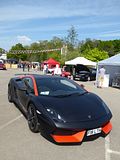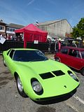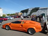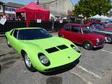 Oldest Lamborghini was this rather striking Miura which belongs to collector and enthusiast, Jane Weizmann, with whom I had quite a lengthy conversation. Some will say was the first true supercar. For sure, this car, produced between 1966 and 1973, is widely considered to have instigated the trend of high performance, two-seater, mid-engined sports cars. When released, it was the fastest production road car available. The Miura was originally conceived by Lamborghini’s engineering team, Gian Paolo Dallara, Paolo Stanzani, and Bob Wallace who in 1965 put their own time into developing a prototype car known as the P400. The engineers envisioned a road car with racing pedigree – one which could win on the track and be driven on the road by enthusiasts. The three men worked on its design at night, hoping to convince Lamborghini such a vehicle would neither be too expensive nor distract from the company’s focus. When finally brought aboard, Lamborghini gave his engineers a free hand in the belief the P400 was a potentially valuable marketing tool, if nothing more. The car featured a transversely-mounted mid-engine layout, a departure from previous Lamborghini cars. The V12 was also unusual in that it was effectively merged with the transmission and differential, reflecting a lack of space in the tightly-wrapped design. The rolling chassis was displayed at the Turin Salon in 1965. Impressed showgoers placed orders for the car despite the lack of a body to go over the chassis. Bertone was placed in charge of styling the prototype, which was finished just days before its debut at the 1966 Geneva motor show. Curiously, none of the engineers had found time to check if the engine would fit inside its compartment. Committed to showing the car, they decided to fill the engine bay with ballast and keep the car locked throughout the show, as they had three years earlier for the début of the 350GTV. Sales head Sgarzi was forced to turn away members of the motoring press who wanted to see the P400’s power plant. Despite this setback, the car was the highlight of the show, immediately boosting stylist Marcello Gandini’s reputation. The favourable reaction at Geneva meant the P400 was to go into production by the following year. The name “Miura”, a famous type of fighting bull, was chosen, and featured in the company’s newly created badge. The car gained the worldwide attention of automotive enthusiasts when it was chosen for the opening sequence of the original 1969 version of The Italian Job. In press interviews of the time company founder Ferruccio Lamborghini was reticent about his precise birth date, but stressed that he was born under the star sign Taurus the bull. Early Miuras, known as P400s (for Posteriore 4 litri), were powered by a version of the 3.9 litre Lamborghini V12 engine used in the 400GT at the time, only mounted transversely and producing 350 hp. Exactly 275 P400 were produced between 1966 and 1969 – a success for Lamborghini despite its then-steep price. Taking a cue from the Mini, Lamborghini formed the engine and gearbox in one casting. Its shared lubrication continued until the last 96 SVs, when the case was split to allow the correct oils to be used for each element. An unconfirmed claim holds the first 125 Miuras were built of 0.9 mm steel and are therefore lighter than later cars. All cars had steel frames and doors, with aluminium front and rear skinned body sections. When leaving the factory they were originally fitted with Pirelli Cinturato 205VR15 tyres (CN72). The P400S Miura, also known as the Miura S, made its introduction at the Turin Motorshow in November 1968, where the original chassis had been introduced three years earlier. It was slightly revised from the P400, with the addition of power windows, bright chrome trim around external windows and headlights, new overhead inline console with new rocker switches, engine intake manifolds made 2 mm larger, different camshaft profiles, and notched trunk end panels (allowing for slightly more luggage space). Engine changes were reportedly good for an additional 20 hp. Other revisions were limited to creature comforts, such as a locking glovebox lid, a reversed position of the cigarette lighter and windshield wiper switch, and single release handles for front and rear body sections. Other interior improvements included the addition of power windows and optional air conditioning, available for US$800. About 338 P400S Miura were produced between December 1968 and March 1971. One S #4407 was owned by Frank Sinatra. Miles Davis also owned one, which he crashed in October 1972 under the influence of cocaine, breaking both ankles. The last and most famous Miura, the P400SV or Miura SV featured different cam timing and altered carburettors. These gave the engine an additional 15 hp to a total of 380 hp. The last 96 SV engines had a split sump. The gearbox now had its lubrication system separate from the engine, which allowed the use of the appropriate types of oil for the gearbox and the engine. This also alleviated concerns that metal shavings from the gearbox could travel into the engine with disastrous and expensive results and made the application of an optional LSD far easier. The SV can be distinguished from its predecessors from its lack of “eyelashes” around the headlamps, wider rear wings to accommodate the new 9-inch-wide rear wheels and Pirelli Cinturato tyres, and different taillights. 150 SVs were produced.