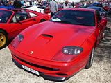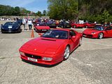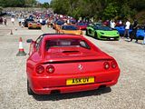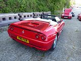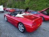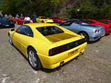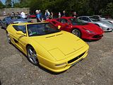 With styling that had a close link to the Testarossa, the next V8 Ferrari to be launched, in 1989, was the 348, as a replacement for the 328 GTB/GTS models, and there were several examples of this model here. At launch, the 348 series were not that enthusiastically received by the press who found much to complain about. The 348’s styling differed from previous models with straked side air intakes and rectangular taillights resembling the Testarossa. Launched in two models, a coupe badged 348 tb (Trasversale Berlinetta) and targa roofed 348 ts (Targa), these were soon joined by a fully open car, the 348 Spider. All featured a normally aspirated 3.4-litre version of the quad-cam, four-valve-per-cylinder V8 engine. As with its predecessors, the model number was derived from this configuration, with the first two digits being the displacement and the third being the number of cylinders. The engine, which produced 300 hp was mounted longitudinally and coupled to a transverse manual gearbox, like the Mondial t with which the 348 shared many components. This was a significant change for Ferrari, with most previous small Ferraris using a transverse engine with longitudinal transmission. The “T” in the model name 348 tb and ts refers to the transverse position of the gearbox. The 348 was fitted with dual-computer engine management using twin Bosch Motronic ECUs, double-redundant anti-lock brakes, and self-diagnosing air conditioning and heating systems. Late versions (1993 and beyond) have Japanese-made starter motors and Nippondenso power generators to improve reliability, as well as the battery located within the front left fender for better weight distribution. Similar to the Testarossa but departing from the BB 512 and 308/328, the oil and coolant radiators were relocated from the nose to the sides, widening the waist of the car substantially, but making the cabin much easier to cool since hoses routing warm water no longer ran underneath the cabin as in the older front-radiator cars. This also had the side effect of making the doors very wide. The 348 was equipped with a dry-sump oil system to prevent oil starvation at high speeds and during hard cornering. The oil level can only be accurately checked on the dipstick when the motor is running due to this setup. The 348 was fitted with adjustable ride-height suspension and a removable rear sub-frame to speed up the removal of the engine for maintenance. Despite trenchant criticism of the car, especially its handling, 2,895 examples of the 348 tb and 4,230 of the 348 ts were produced.