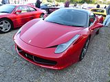 Next up was the 458, of which there were examples of both the closed Coupe and the later Spider model. An all new design, the 458 Italia was first officially unveiled at the 2009 Frankfurt Motor Show. Once more, Ferrari advised that the model incorporated technologies developed from the company’s experience in Formula 1. The body computer system was developed by Magneti Marelli Automotive Lighting. The 458 came with a 4,499 cc V8 engine of the “Ferrari/Maserati” F136 engine family, producing 570 PS ( 562 hp) at 9,000 rpm and 540 N·m (398 lb/ft) at 6,000 rpm with 80% torque available at 3,250 rpm. The engine featured direct fuel injection, a first for Ferrari mid-engine setups in its road cars. The only transmission available was a dual-clutch 7-speed Getrag gearbox, in a different state of tune shared with the Mercedes-Benz SLS AMG. There was no traditional manual option, making this the fourth road-car after the Enzo, Challenge Stradale and 430 Scuderia not to be offered with Ferrari’s classic gated manual. The car’s suspension featured double wishbones at the front and a multi-link setup at the rear, coupled with E-Diff and F1-Trac traction control systems, designed to improve the car’s cornering and longitudinal acceleration by 32% when compared with its predecessors.The brakes included a prefill function whereby the pistons in the calipers move the pads into contact with the discs on lift off to minimise delay in the brakes being applied. This combined with the ABS and standard Carbon Ceramic brakes caused a reduction in stopping distance from 100–0 km/h (62-0 mph) to 32.5 metres. Ferrari’s official 0–100 km/h (62 mph) acceleration time was quoted as 2.9–3.0 seconds with a top speed of 340 km/h (210 mph). In keeping with Ferrari tradition the body was designed by Pininfarina under the leadership of Donato Coco, the Ferrari design director. The interior design of Ferrari 458 Italia was designed by Bertrand Rapatel, a French automobile designer. The car’s exterior styling and features were designed for aerodynamic efficiency, producing a downforce of 140 kg (309 lb) at 200 km/h. In particular, the front grille features deformable winglets that lower at high speeds, in order to offer reduced drag. The car’s interior was designed using input from former Ferrari Formula 1 driver Michael Schumacher; in a layout common to racing cars, the new steering wheel incorporates many controls normally located on the dashboard or on stalks, such as turning signals or high beams. At launch the car was widely praised as being pretty much near perfect in every regard. It did lack a fresh air version, though, but that was addressed with the launch of the 458 Spider at the 2011 Frankfurt Motor Show. This convertible variant of the 458 Italia featured an aluminium retractable hardtop which, according to Ferrari, weighs 25 kilograms (55 lb) less than a soft roof such as the one found on the Ferrari F430 Spider, and can be opened in 14 seconds The engine cover was redesigned to accommodate the retractable roof system. It had the same 0–100 km/h time as the hard-top but a lower top speed of 199 mph. It quickly became the better seller of the two versions.