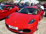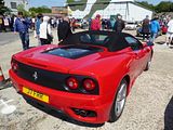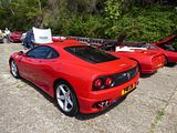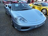 It was with the 360 Modena that sales of Ferrari models really took off, with unprecedented volumes of the car being sold. The 360 Modena was launched in 1999, named after the town of Modena, the birthplace of Enzo Ferrari. A major innovation in this all new model came from Ferrari’s partnership with Alcoa which resulted in an entirely new all-aluminium space-frame chassis that was 40% stiffer than the F355 which had utilised steel. The design was 28% lighter despite a 10% increase in overall dimensions. Along with a lightweight frame the new Pininfarina body styling deviated from traditions of the previous decade’s sharp angles and flip-up headlights. The new V8 engine, common to all versions, was of 3.6 litre capacity with a flat plane crankshaft, titanium connecting rods and generates 400 bhp Despite what looks like on paper modest gains in reality the power to weight ratio was significantly improved on over the F355, this was due to the combination of both a lighter car and more power. The 0 to 100 km/h acceleration performance improved from 4.6 to 4.3 seconds. The first model to be rolled out was the 360 Modena, available as a manual, or an F1 electrohydraulic manual. Next up was an open car. The 360 was designed with a Spider variant in mind; since removing the roof of a coupe reduces the torsional rigidity, the 360 was built for strength in other areas. Ferrari designers strengthened the sills, stiffened the front of the floorpan and redesigned the windscreen frame. The rear bulkhead had to be stiffened to cut out engine noise from the cabin. The convertible’s necessary dynamic rigidity is provided by additional side reinforcements and a cross brace in front of the engine. Passenger safety is ensured by a strengthened windscreen frame and roll bars. The 360 Spider displays a curvilinear waistline. The fairings imply the start of a roof, and stable roll bars are embedded in these elevations. Due to use of light aluminium construction throughout, the Spider weighs in only 60 kg heavier than the coupé. As with the Modena version, its 3.6 litre V8 with 400 bhp is on display under a glass cover. The engine — confined in space by the convertible’s top’s storage area — acquires additional air supply through especially large side grills. The intake manifolds were moved toward the center of the engine between the air supply conduits in the Spider engine compartment, as opposed to lying apart as with the Modena. In terms of performance, the 0-60 mph time was slightly slower at 4.4 seconds due to the slight weight increase, and the top speed was reduced from 189 to 180 mph. Despite the car’s mid-mounted V8 engine, the electrically operated top is able to stow into the compartment when not in use. The convertible top was available in black, blue, grey and beige. The transformation from a closed top to an open-air convertible is a two-stage folding-action that has been dubbed “a stunning 20 second mechanical symphony”. The interior of the Spider is identical to that of the coupé. There were several examples of both the Modena Coupe and the Spider here.