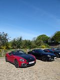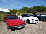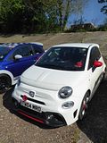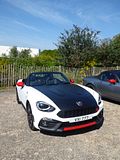 Local man Peter Dyer brought his 50th Anniversary Edition car. This version was unveiled at the 2013 Frankfurt Motor Show, as a limited production car of which just 299 vehicles would be made commemorating the 50th anniversary of the original Fiat-Abarth 595. As that original car had been badged a Fiat, so was this one, which confused everyone who had been trying to explain how Abarth is a separate company. The UK cars listed at around £29,000 so not cheap, but for that money you got the 180 PS 1.4 T-Jet engine, Abarth Competizione gearbox, 17-inch alloy wheels with 695 Magnesio Grey design embellished and red liner, Brembo 305 mm floating brake discs, fixed four-piston caliper, special shock absorbers, ‘Record Monza’ variable back-pressure dual mode exhaust, matt three-layer white body colour, Xenon headlights with dipped and driving light functions, red leather sports seats with white inserts and red stitching, Abarth logo at black leather steering wheel with red inserts and finder and the kick plate.