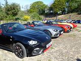 Some new colours were introduced, and very soon one of those, Record Grey, frequently combined with a tan interior became one of the most popular choices. There were several examples of this popular colour here and there is no denying that this combination suits the Abarth shape very well.