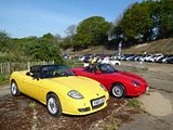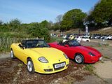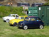 Following the success of the 500 and 600 models, Fiat introduced a slightly larger and more expensive variant, the 850 in 1964. The regular 2 door saloon was soon joined in the range by other models and they are the ones you see more often these days, not that they are exactly common now. The 850 Coupe, early and later versions of which were to be seen here was seen for the first time at the 1965 Geneva Show. As was generally the case at the time, the body looked completely different from the saloon on which it was based, but underneath it shared the same mechanicals including the the original 843 cc engine producing 47 hp, which gave it a maximum speed of 84 mph. A Spider model was launched at the same time. In order to separate the sportier variants, equipment levels were raised, with both models getting sport seats, a sport steering wheel and round speedometer; The Spider even received a completely rearranged instrument panel. The front drum brakes were replaced with disc brakes, although drum brakes remained on the rear wheels. In 1968, Fiat revised both the Spider and Coupé and gave them a stronger engine with 903 cc and 52 hp. They were called Sport Spider and Sport Coupé. The Sport Spider body stayed essentially the same, but with a restyled front, whereas the Coupe gained twin headlights at the front and a revised tail with a slight lip on the trailing edge of the engine cover. Despite its popularity, the Coupe was the first model to cease production, being deleted in 1971. Seen here was an late model 850 Coupe and an 850 Spider.