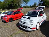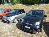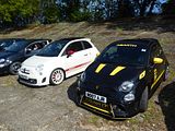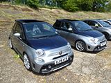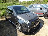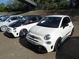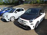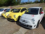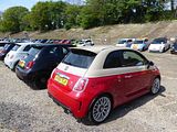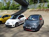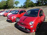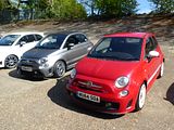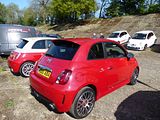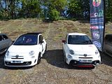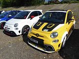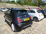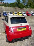 The vast majority of cars here were the 500-based models which have been on sale now since the end of 2008, following a launch at the Paris Show that year. Since that time there have been a number of detailed changes to the standard cars and a lot of limited editions. Those who really know the marque can spot most of them, but some are so subtle that unless there is a badge you can see, you will not be quite sure which version you are looking at. It used to be relatively easy, when the model was first launched, as there was only one version as shipped ex works called the 500. It had a 135 bhp 1.4 litre turbo-charged engine coupled to a five speed manual gearbox, with 16″ alloys as standard, and the option of 17″ wheels, and a colour palette comprising of two whites (BossaNova White, the standard colour, or the pearlescent Funk White), Red (Pasadoble), Pale Grey (Campovolo) or Black. If you wanted more power – 160 bhp – then you could order an Esseesse kit, which came in a large wooden crate, containing new wheels, springs, an ECU upgrade, the Monza exhaust system and badging. It was dealer fitted and could be applied at any time within the first 12 months or 10,000 miles from registration. Needless to say, it proved popular. As were many of the optional extras, with stickers for the sides, a large scorpion for the bonnet and even a chequered pattern for the roof among the personalisation options offered. Several of the original style of cars were here.