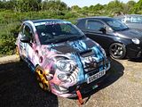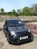 This is not so much modified as bespoke. It was making another appearance at a UK event, following acquisition by Abarth fan Dave Quinn some time ago. Effectively this takes its inspiration from the Assetto Corse race cars produced in 2010 and it has a Romeo Ferrari bodykit on it. Just two were created and the other one is in Italy. I got a sneak preview of it the previous evening as when I arrived at another Abarth owners’ house in advance of dinner, he and Dave were busy cleaning it. Not really a long distance car, Dave had to get it back to Yorkshire after the event.
