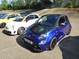 What is known as the Series 4 version of the familiar 595 reached the markets in the middle of 2016. After rumours had circulated all winter following the launch of the facelifted Fiat 500 last year, Abarth finally unveiled the Series 4 at the end of May 2016. Initially, we were told that the cars would not be available in the UK until September, but that came forward somewhat, with dealers all receiving demo cars in June, and the first customers taking delivery in July. Three regular production versions of both the closed car and the open-topped C were initially available, all badged 595, and called Custom, Turismo and Competizione, as before, though numerous limited edition models have since appeared and in most case disappeared. The most significant changes with the Series 4 are visual, with a couple of new colours, including the much asked for Modena Yellow and a different red, called Abarth Red, which replaces both the non-metallic Officina and – slightly surprisingly – the tri-coat pearlescent Cordolo Red. as well as styling changes front and rear. The jury is still out on these, with many, me included, remaining to be convinced. At the front, the new air intake does apparently allow around 15 – 20 % more air in and out, which will be welcome, as these cars do generate quite a lot of heat under the bonnet. Competizione models for the UK retain the old style headlights, as they have Xenon lights as standard, whereas the Custom and Turismo cars have reshaped units. At the back, there are new light clusters and a new rear bumper and diffuser. Inside, the most notable change is the replacement of the Blue & Me system with a more modern uConnect Audio set up, which brings a new colour screen to the dash. Mechanically, there is an additional 5 bhp on the Custom (now 145) and Turismo (now 165 bhp) and the option of a Limited Slip Diff for the Competizione, which is likely to prove a popular option. Details of the interior trim have changed, with a filled-in glovebox like the US market cars have always had, and electric windows switches that are like the US ones, as well as a part Alcantara trim to the steering wheel in Competizione cars. These cars have now been on offer for five years and with Abarth sales on the rise, it was no surprise that they were particularly well represented here.