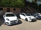 The Abarth Grande Punto debuted at the 2007 Frankfurt IAA Show, going on sale in the UK in late summer of 2008. Offering 155 bhp from its 1.4 litre T-Jet engine, coupled to a six speed gearbox, and riding on 45 profile 17″ alloys, the standard car got rave reviews from the journalists when they first tried it, and they were even more impressed by the changes wrought by the optional Esseesse kit. This increased power to 177 bhp, brought 18″ OZ lower profile wheels, whilst new springs lowered the ride height by 15-20mm, and high-performance front brake pads and cross-drilled front disc brakes helped the car to stop more quickly. The most distinctive feature of the car were the white alloy wheels, though, as owners found, keeping these clean is not a job for the uncommitted, and many have a second set of wheels that they use fro grubbier conditions. Despite the positive press at launch, the car entered a very competitive sector of the market, and the combination of being relatively unknown, a limited number of dealers and the existence of established rivals from Renault and others meant that this always remained a left-field choice. The owners loved them, though, and they still do. The oldest cars have now had their 13th birthdays, and some have amassed relatively big mileages, but they are still a car for the cognoscenti. Among those here was Lloyd Hartley, whose car has now done 158,000 miles and still looks like new!