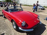 The 275 GTS was a two-seat grand touring spider produced from 1964 to 1966. The 275 GTS was introduced at the same time as the 275 GTB and was mechanically almost identical, sharing the 3.3 litre V12, transaxle, chassis and fully independent suspension. Ferrari reported that the engine fitted to the 275 GTS produced 260 bhp. This was less than the reported 280 bhp produced by the 275 GTB, although there was likely no difference in engines between the models. The 275 GTS was never equipped with a torque tube, unlike the 275 GTB series II. This model was fitted with 205Vr15 Pirelli Cinturato CN72 tyres on Borrani wire wheels. The all steel 275 GTS body was designed and manufactured by Pininfarina. Its appearance was entirely different than that of the 275 GTB coupé, with a shorter front hood, smaller uncovered headlights, and overall balanced proportions suggesting earlier 250 Pininfarina Cabriolet models. All 275 GTS were equipped with a folding cloth convertible top and an additional removable hard top was a factory option. Ferrari produced a total of 200 275 GTS between late 1964 and early 1966, including 19 in right hand drive. The 275 GTS was replaced in 1966 by the 330 GTS, leaving no 3.3 L spider in the range until the creation of the 275 GTB/4 NART Spider.
