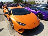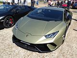 Replacing Lamborghini’s sales leader and most produced car, the Gallardo, the Huracán made its auto show debut at the March 2014 Geneva Auto Show, and was released in the second quarter of 2014. The name of the Huracan LP 610-4 comes from the fact that this car has 610 metric horsepower and 4 wheel drive. Huracán (huracán being the Spanish word for hurricane) is inspired by a Spanish fighting bull. Continuing the tradition of using names from historical Spanish fighting bulls, Huracán was a bull known for its courage that fought in 1879. Also Huracan is the Mayan god of wind, storm and fire. Changes from the Gallardo included full LED illumination, a 12.3 inch full-colour TFT instrument panel, Fine Nappa leather and Alcantara interior upholstery, redesigned dashboard and central tunnel, Iniezione Diretta Stratificata (IDS, essentially an adapted version of parent Audi’s Fuel Stratified Injection) direct and indirect gasoline injections, engine Stop & Start technology, EU6 emissions regulation compliance, Lamborghini Doppia Frizione (LDF) 7-speed dual-clutch transmission with 3 modes (STRADA, SPORT and CORSA), 20 inch wheels, carbon-ceramic brake system, optional Lamborghini Dynamic Steering variable steering system and MagneRide electromagnetic damper control. In early 2015, the Huracán appeared on Top Gear. It got a neutral review from Richard Hammond who said that it was too tame to be a “proper Lamborghini.” However, it got around the Top Gear test track in 1:15.8 which is faster than any other Lamborghini to go around the track to date, including the Aventador. Now it has been available in the UK for some a couple of years, there are now quite a few on our roads, so it was no surprise to find the model here, with the recently released Performante model joining the Coupe and the Spider.