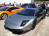 In its turn, the Diablo gave way to the Murcielago in 2001. Taking its name from the Spanish for “bat”, this was Lamborghini’s first new design in eleven years and more importantly, the brand’s first new model under the ownership of German parent company Audi, which was manifest in a much higher level of quality and reliability. The Murcielago was styled by Peruvian-born Belgian Luc Donckerwolke, Lamborghini’s head of design from 1998 to 2005. Initially it was only available as a Coupe. The Murciélago was an all-wheel drive, mid-engined supersports car. With an angular design and an exceptionally low slung body, the highest point of the roof is just under 4 feet above the ground. One of the vehicle’s most distinguishing features are its scissor doors. which lends to the extreme image. First-generation Murciélagos, produced between 2001 and 2006, were powered by a Lamborghini V12 that traces its roots back to the company’s beginnings in the 1960s. The rear differential is integrated with the engine itself, with a viscous coupling centre differential providing drive to the front wheels. Power is delivered through a 6-speed manual transmission. The Murciélago suspension uses an independent double-wishbone design, and bodywork features carbon fiber, steel and aluminium parts. The rear spoiler and the active air intakes integrated into the car’s shoulders are electromechanically controlled, deploying automatically only at high speeds in an effort to maximise both aerodynamic and cooling efficiency. The first generation cars were produced between 2001 and 2006, and known simply as Murciélago, sometimes Murciélago VT. Their V12 engines produced just under 580 PS (572 hp), and powered the car to 100 km/h (62 mph) in 3.8 seconds. Subsequent versions incorporated an alphanumeric designation to the name Murciélago, which indicated their engine configuration and output. However, the original cars are never referred to as “LP 580s”. The Murciélago Roadster was introduced in 2004. Primarily designed to be an open top car, it employed a manually attached soft roof as cover from adverse weather, but a warning on the windshield header advised the driver not to exceed 100 mph (160 km/h) with the top in place. The designer used the B-2 stealth bomber, the Wally 118 WallyPower yacht, and architect Santiago Calatrava’s Ciutat de les Arts i les Ciències in Valencia, Spain as his inspiration for the roadster’s revised rear pillars and engine cover. In March 2006, Lamborghini unveiled a new version of its halo car at the Geneva Motor Show: the Murciélago LP 640. The new title incorporated the car’s name, along with an alphanumeric designation which indicated the engine’s orientation (Longitudinale Posteriore), along with the newly updated power output. With displacement now increased to 6.5 litres, the new car made 640 PS ( 631 hp) at 8000 rpm. The Murciélago’s exterior received a minor facelift. Front and rear details were revised, and side air intakes were now asymmetrical with the left side feeding an oil cooler. A new single outlet exhaust system incorporated into the rear diffuser, modified suspension tuning, revised programming and upgraded clutch for the 6-speed “e-Gear” automated sequential transmission with launch control rounded out the performance modifications. Interior seating was also re-shaped to provide greater headroom, and a new stereo system formed part of the updated dashboard. Optional equipment included Carbon fibre-reinforced Silicon Carbide (C/SiC) ceramic composite brakes, chrome paddle shifters and a glass engine cover. At the 2006 Los Angeles Auto Show, Lamborghini announced that the roadster version of the Murciélago would also be updated to LP 640 status. At the 2009 Geneva Motor Show, Lamborghini unveiled the ultimate version of the Murciélago, the LP 670–4 SuperVeloce. The SV moniker had previously appeared on the Diablo SV, and Miura. SV variants are more extreme and track-oriented, and are released at the end of each model’s production run. The SuperVeloce’s V12 produced 670 PS (661 hp) at 8000 rpm and 660 N·m (490 lbf·ft) of torque at 6500 rpm, thanks to revised valve timing and upgraded intake system. The car’s weight was also reduced by 100 kg (220 lb) through extensive use of carbon fibre inside and out. A new lighter exhaust system was also used. As a result of the extensive weight loss, the SV had a power-to-weight ratio of 429 bhp/ton. Also standard were the LP 640’s optional 15-inch carbon-ceramic disc brakes with 6 piston calipers. The original production plan for the SV was limited to 350 cars, but in fact only 186 LP 670-4s were produced before the factory had to make room for the new Aventador production line. Numbered cars 1–350 do not represent the order in which cars were manufactured. Only 5-6 were made with manual transmission. Production of the Murciélago ended on November 5, 2010, with a total run of 4,099 cars. Its successor, the Aventador, was released at the 2011 Geneva Motor Show.