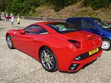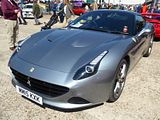After a gap of some years, Ferrari added a 4 seater V8 model to the range at the 2008 Paris Motor Show, with the California. According to industry rumours, the California originally started as a concept for a new Maserati, but the resulting expense to produce the car led the Fiat Group to badge it as a Ferrari in order to justify the high cost of purchase; the company denies this, however. The California heralded a number of firsts for Ferrari: the first front engined Ferrari with a V8; te first to feature a 7-speed dual-clutch transmission; the first with a folding metal roof; the first with multi-link rear suspension; and the first with direct petrol injection. Bosch produced the direct injection system. The engine displaces 4,297 cc, and used direct injection. It delivered 453 bhp at 7,750 rpm; its maximum torque produced was 358 lbf·ft at 5,000 rpm. The resulting 106 bhp per litre of engine displacement is one of the highest for a naturally aspirated engine, as other manufacturers have used supercharging or turbocharging to reach similar power levels. Ferrari spent over 1,000 hours in the wind tunnel with a one-third-scale model of the California perfecting its aerodynamics. With the top up, the California has a drag coefficient of Cd=0.32, making it the most aerodynamic Ferrari ever made until the introduction of the Ferrari F12 Berlinetta. Throughout the California’s production, only 3 cars were built with manual transmission, including one order from the UK. On 15 February 2012, Ferrari announced an upgrade, which was lighter and more powerful. Changes include reducing body weight by 30 kg (66 lb), increased power by output of 30 PS and 11 lbf·ft, acceleration from 0–100 km/h (62 mph) time reduced to 3.8 seconds, introduction of Handling Speciale package and elimination of the manual transmission option. The car was released at the 2012 Geneva Motor Show as a 2012 model in Europe. To give the clients a more dynamic driving experience, an optional HS (Handling Speciale) package was developed as part of the update. It can be recognised by a silver coloured grille and ventilation blisters behind the front wheel wells. The HS package includes Delphi MagneRide magnetorheological dampers controlled by an ECU with 50% faster response time running patented Ferrari software, stiffer springs for more precise body control and a steering rack with a 9 per cent quicker steering ratio (2.3 turns lock to lock as opposed to the standard rack’s 2.5). A more substantive update came in 2014, with the launch of the California T. It featured new sheetmetal, a new interior, a revised chassis and a new turbocharged powertrain.