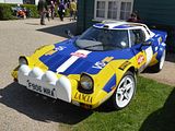 There were a couple of examples of the Stratos on show. No, not one of the originals, being instead a replica, but even so, both were rather splendid, and attracted lots of interest. A Bertone-designed concept car called the Lancia Stratos Zero was shown to the public in 1970, but shares little but the name and mid-engined layout with the Stratos HF version. A new car called the New Stratos was announced in 2010 which was heavily influenced by the design of the original Stratos, but was based on a Ferrari chassis and engine. Bertone had no previous business with Lancia, who were traditionally linked with Pininfarina, and he wanted to come into conversation with them. Bertone knew that Lancia was looking for a replacement for the ageing Fulvia for use in rally sports and so he designed an eye-catcher to show to Lancia. Bertone used the running gear of the Fulvia Coupé of one of his personal friends and built a running showpiece around it. When Bertone himself appeared at the Lancia factory gates with the Stratos Zero he passed underneath the barrier and got great applause from the Lancia workers. After that a co-operation between Lancia and Bertone was formed to develop a new rally car based on ideas of Bertone’s designer Marcello Gandini who already had designed the Lamborghini Miura and Countach. Lancia presented the Bertone-designed Lancia Stratos HF prototype at the 1971 Turin Motor Show, a year after the announcement of the Stratos Zero concept car. The prototype Stratos HF (Chassis 1240) was fluorescent red in colour and featured a distinctive crescent-shaped-wrap-around windshield providing maximum forward visibility with almost no rear visibility. The prototype had three different engines in its early development life: the Lancia Fulvia engine, the Lancia Beta engine and finally for the 1971 public announcement, the mid-mounted Dino Ferrari V6 producing 190 hp. The use of the Dino V6 was planned right from the beginning of the project, but Enzo Ferrari was reluctant to sign off the use of this engine in a car he saw as a competitor to his own Dino V6. After the production of the Dino car had ended the “Commendatore” (a popular nickname for Enzo Ferrari) agreed on delivering the engines for the Stratos, and Lancia then suddenly received 500 units. The Stratos was a very successful rally car during the 1970s and early 1980s. It started a new era in rallying as it was the first car designed from scratch for this kind of competition. The three leading men behind the entire rallying project were Lancia team manager Cesare Fiorio, British racer/engineer Mike Parkes and factory rally driver Sandro Munari with Bertone’s Designer Marcello Gandini taking a very personal interest in designing and producing the bodywork. Lancia did extensive testing with the Stratos and raced the car in several racing events where Group 5 prototypes were allowed during the 1972 and 1973 seasons. Production of the 500 cars required for homologation in Group 4 commenced in 1973 and the Stratos was homologated for the 1974 World Rally Championship season. The Ferrari Dino V6 engine was phased out in 1974, but 500 engines among the last built were delivered to Lancia. Production ended in 1975 when it was thought that only 492 were made (for the 1976 season, the Group 4 production requirement was reduced to 400 in 24 months. Manufacturer of the car was Bertone in Turin, with final assembly by Lancia at the Chivasso plant. Powered by the Dino 2.4 litreV6 engine that was also fitted to the rallying versions, but in a lower state of tune, it resulted in a power output of 190 hp, giving the road car a 0–100 km/h time of 6.8 seconds, and a top speed of 232 km/h (144 mph). The Stratos weighed between 900 and 950 kilograms, depending on configuration. Power output was around 275 hp for the original 12 valve version and 320 hp for the 24 valve version. Beginning with the 1978 season the 24 valve heads were banned from competition by a change to the FIA rules. Even with this perceived power deficit the Stratos was the car to beat in competition and when it did not suffer an accident or premature transmission failure (of the latter there were many) it had great chances to win. Despite the fact that the Stratos was never intended to be a race car, there were two Group 5 racing cars built with 560 hp, using a single KKK turbocharger. The car won the 1974, 1975 and 1976 championship titles in the hands of Sandro Munari and Björn Waldegård, and might have gone on to win more had not internal politics within the Fiat group placed rallying responsibility on the Fiat 131 Abarths. As well as victories on the 1975, 1976 and 1977 Monte Carlo Rally, all courtesy of Munari, the Stratos won the event with the private Chardonnet Team as late as 1979. Without support from Fiat, and despite new regulations that restricted engine power, the car would remain a serious competitor and proved able to beat works cars in several occasions when entered by an experienced private team with a talented driver. The last victory of the Stratos was in 1981, at the Tour de Corse Automobile, another World Rally Championship event, with a victory by longtime Stratos privateer Bernard Darniche. When the Fiat group favoured the Fiat 131 for rallying Lancia also built two Group 5 turbocharged ‘silhouette’ Stratos for closed-track endurance racing. These cars failed against the Porsche 935s on closed tracks but proved successful in hybrid events. While they failed in the Tour de France Automobile, one of these cars won the 1976 Giro d’Italia Automobilistico, an Italian counterpart of the Tour de France Automobile. One of the cars was destroyed in Zeltweg, when it caught fire due to overheating problems. The last surviving car would win the Giro d’Italia event again before it was shipped to Japan to compete in the Fuji Speedway based Formula Silhouette series, which was never raced. The car would then be sold and reside in the Matsuda Collec