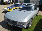 Fiat launched a new large saloon in 1959, the 1800 and 2100, with Pininfarina styling which looked very similar to the BMC quintet of Austin Cambridge and Morris Oxford and relatives, as well as the Peugeot 404. A versatile Estate model followed not long after. In 1961, the model received a face lift, with a new front end featuring twin headlights and an enlarged 2.3 litre 4 cylinder engine, creating the 2300. Joining the saloon and estate models was the stylish Coupe, designed by Ghia. It was available in two versions, the regular 115 bhp 2300 Coupé and the more potent 2300S Coupé which put out 150 bhp thanks to double twin-choke carburettors. The shape of the car was first seen in public when Ghia presented it as a prototype sports coupé at the 1960 Turin Motor Show. The production version was presented in 1961 and went on general sale in 1962. Having developed the coupé body, Ghia lacked the production capacity needed for the volumes envisaged, and were obliged to subcontract its production to OSI. The coupé body was welded to the standard floor platform of the 2300 saloon with which it shared its core components. (Despite being a new model, the 2300 saloon was in most respects a well-proven design, being a larger engined version of the Fiat 2100 that had been available since 1959. The wheelbase was identical, but the coupé had a slightly wider track at both ends than the saloon, and final drive gearing for the coupé was increased to 3.9 (3.72 for the 2300S coupé) which translated to 20.9 mph per 1,000 rpm. Inside the 2300 Coupé featured power operated windows and other luxury fittings. It was a costly car and only sold in small quantities, with production ceasing in 1968. There are only a handful of them in the UK, so it was good to see one here.
