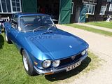 Oldest of the post-war Lancia models on show was this fabulous Aurelia 2500GT Coupe. Designed by Vittorio Jano, the Lancia Aurelia was launched in 1950 and production lasted until the summer of 1958.The very first Aurelias were the B10 Berlinas. They used the first production V6 engine, a 60° design developed by Francesco de Virgilio who was, between 1943 and 1948 a Lancia engineer, and who worked under Jano. The first cars had a capacity of 1754 cc, and generated 56 hp. During production, capacity grew from 1.8 litres to 2.5 litres across six distinct Series. Prototype engines used a bore and stroke of 68 mm x 72 mm for 1569 cc; these were tested between 1946 and 1948. It was an all-alloy pushrod design with a single camshaft between the cylinder banks. A hemispherical combustion chamber and in-line valves were used. A single Solex or Weber carburettor completed the engine. Some uprated 1991 cc models were fitted with twin carburettors. At the rear was an innovative combination transaxle with the gearbox, clutch, differential, and inboard-mounted drum brakes. The front suspension was a sliding pillar design, with rear semi-trailing arms replaced by a de Dion tube in the Fourth series. The Aurelia was also first car to be fitted with radial tyres as standard equipment. Aurelia was named after Via Aurelia, a Roman road leading from Rome to France. The B21 version was released in 1951 with a larger 1991 cc 70 hp engine and a 2-door B20 GT coupé appeared that same year. It had a shorter wheelbase and a Ghia-designed, Pininfarina-built body. The same 1991 cc engine produced 75 hp in the B20. In all, 500 first series Aurelias were produced. This is generally believed to the first car to use the name GT, or Gran Turismo. The B20 GT Aurelia had a successful career in motorsport, too. In the 1951 Mille Miglia the 2-litre Aurelia, driven by Giovanni Bracco and Umberto Maglioli, finished 2nd beaten only by the Ferrari America. The same year it took first in class and 12th overall at LeMans. Modified Aurelias took the first three places on 1952’s Targa Florio with Felice Bonetto as the winner and another win on Lièges-Rome-Lièges of 1953.