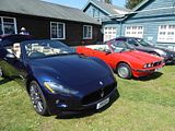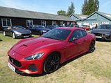 The most numerous Maserati cars at most events these days are those known internally as the Tipo 338 and better known as the 3200GT and 4200GT and Spider, and this design was evident here. After producing BiTurbo based cars for 17 years, Maserati replaced their entire range with a new model in July 1998, the 3200 GT. This very elegant 2+2 grand tourer was styled by Italdesign, whose founder and head Giorgetto Giugiaro had previously designed, among others, the Ghibli, Bora and Merak. The interior design was commissioned to Enrico Fumia. Its name honoured the Maserati 3500 GT, the Trident’s first series production grand tourer. Sold mainly in Europe, the 3200 GT was powered by the twin-turbo, 32-valve, dual overhead cam 3.2-litre V8 engine featured in the Quattroporte Evoluzione, set up to develop 370 PS (365 hp). The car was praised for its styling, with the distinctive array of tail-lights, consisting of LEDs, arranged in the shape of boomerang being particularly worthy of comment. The outer layer of the ‘boomerang’ provided the brake light, with the inner layer providing the directional indicator. The car was also reviewed quite well by the press when they got to drive it in early 1999, though it was clear that they expected more power and excitement. That came after 4,795 cars had been produced, in 2001, with the launch of the 4200 models. Officially called the Coupé and joined by an open-topped Spyder (Tipo M138 in Maserati speak), these models had larger 4.2 litre engines and had been engineered so the cars could be sold in America, marking the return to that market for Maserati after an 11 year gap. There were some detailed styling changes, most notable of which were the replacement of the boomerang rear lights with conventional rectangular units. Few felt that this was an improvement. The cars proved popular, though, selling strongly up until 2007 when they were replaced by the next generation of Maserati. Minor changes were made to the model during its six year production, but more significant was the launch at the 2004 Geneva Show of the GranSport which sported aerodynamic body cladding, a chrome mesh grille, carbon fibre interior trim, and special 19-inch wheels. It used the Skyhook active suspension, with a 0.4 inch lower ride height, and the Cambiocorsa transmission recalibrated for quicker shifts. The exhaust was specially tuned to “growl” on start-up and full throttle. The GranSport was powered by the same 4244 cc, 90° V8 petrol engine used on the Coupé and Spyder, but developing 400 PS (395 hp) at 7000 rpm due primarily to a different exhaust system and improvements on the intake manifolds and valve seats. A six-speed paddle shift transmission came as standard. The GranSport has a claimed top speed of 180 mph (290 km/h) and a 0–62 mph (0–100 km/h) time of 4.8 seconds.
