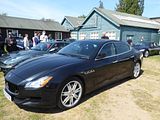 Still acclaimed as one of the best-looking saloons ever produced is this car, the fifth generation Quattroporte, a couple of which were on show. Around 25,000 of these cars were made between 2004 and 2012, making it the second best selling Maserati of all time, beaten only by the cheaper BiTurbo of the 1980s. The Tipo M139 was unveiled to the world at the Frankfurt Motor Show on 9 September 2003, with production starting in 2004. Exterior and interior design was done by Pininfarina, and the result was widely acclaimed to be one of the best looking saloons not just of its time, but ever, an opinion many would not disagree with even now. Built on an entirely new platform, it was 50 cm (19.7 in) longer than its predecessor and sat on a 40 cm (15.7 in) longer wheelbase. The same architecture would later underpin the GranTurismo and GranCabrio coupés and convertibles. Initially it was powered by an evolution of the naturally aspirated dry sump 4.2-litre V8 engine, mounted on the Maserati Coupé, with an improved output of 400 PS . Due to its greater weight compared to the Coupé and Spyder, the 0-62 mph (0–100 km/h) time for the Quattroporte was 5.2 seconds and the top speed 171 mph (275 km/h). Initially offered in only one configuration, equipped with the DuoSelect transmission, the gearbox was the weak point of the car, receiving most of the criticism from the press reviews. Maserati increased the range at the 2005 Frankfurt Motor Show, with the launch of the Executive GT and Sport GT trim levels. The Executive GT came equipped with a wood-rimmed steering wheel, an alcantara suede interior roof lining, ventilated, adaptive, massaging rear seats, rear air conditioning controls, veneered retractable rear tables, and curtain shades on the rear windows. The exterior was distinguished by 19 inch eight-spoke ball-polished wheels and chrome mesh front and side grilles. The Quattroporte Sport GT variant offered several performance upgrades: faster shifting transmission and firmer Skyhook suspensions thanks to new software calibrations, seven-spoke 20 inch wheels with low-profile tyres, cross-drilled brake rotors and braided brake lines. Model-specific exterior trim included dark mesh front and side grilles and red accents to the Trident badges, as on vintage racing Maseratis. Inside there were aluminium pedals, a sport steering wheel and carbon fibre in place of the standard wood inserts. A new automatic transmission was presented at the 2007 Detroit Motor Show, marketed as the Maserati Quattroporte Automatica. As all three trim levels were offered in both DuoSelect and Automatica versions, the lineup grew to six models. The Quattroporte Sport GT S was introduced at the 2007 Frankfurt Motor Show. Taking further the Sport GT’s focus on handling, this version employed Bilstein single-rate dampers in place of the Skyhook adaptive system. Other changes from the Sport GT comprised a lowered ride height and 10 mm wider 295/30 rear tyres, front Brembo iron/aluminium dual-cast brake rotors and red-painted six piston callipers. The cabin was upholstered in mixed alcantara and leather, with carbon fibre accents; outside the door handles were painted in body colour, while the exterior trim, the 20 inch wheels and the exhaust pipes were finished in a “dark chrome” shade. After Images of a facelifted Quattroporte appeared on the Internet in January 2008; the car made its official début at the 2008 Geneva Motor Show. Overseen by Pininfarina, the facelift brought redesigned bumpers, side sills and side mirrors, a convex front grille with vertical bars instead of horizontal, new headlights and tail lights with directional bi-xenon main beams and LED turn signals. Inside there was a new navigation and entertainment system. All Quattroporte models now used the ZF automatic transmission, the DuoSelect being discontinued. The 4.2-litre Quattroporte now came equipped with single-rate damping comfort-tuned suspension and 18 inch wheels. Debuting alongside it was the Quattroporte S, powered by a wet-sump 4.7-litre V8, the same engine of the Maserati GranTurismo S, with a maximum power of 424 bhp and maximum torque of 361 lb·ft. In conjunction with the engine, the braking system was upgraded to cross-drilled discs on both axles and dual-cast 360 mm rotors with six piston callipers at the front. Skyhook active damping suspension and 19 inch V-spoke wheels were standard. Trim differences from the 4.2-litre cars were limited to a chrome instead of titanium-coloured front grille. The Quattroporte Sport GT S was premièred at the North American International Auto Show in January 2009. Its 4.7-litre V8 produced 440 PS (434 hp), ten more than the Quattroporte S, thanks to revised intake and to a sport exhaust system with electronically actuated bypass valves. Other mechanical changes were to the suspensions, where as on the first Sport GT S single-rate dampers took place of the Skyhook system, ride height was further lowered and stiffer springs were adopted. The exterior was distinguished by a specific front grille with convex vertical bars, black headlight bezels, red accents to the Trident badges, the absence of chrome window trim, body colour door handles and black double oval exhaust pipes instead of the four round ones found on other Quattroporte models. Inside veneers were replaced by “Titan Tex” composite material and the cabin was upholstered in mixed Alcantara and leather. This means that there are quite a number of different versions among the 25,256 units produced, with the early DuoSelect cars being the most numerous.