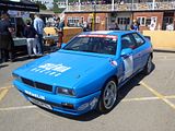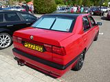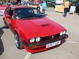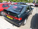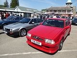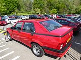 These days you are more likely to come across a 155 at a gathering of Italian cars than other Alfa models of the same period, as this rather boxy saloon has built up quite a following in recent years, though there were surprisingly few of them here at this event. The 155 was one of a series of cars built by the Fiat Group on a shared platform, the so called Tipo 3 or Tipo Tre, which sat under the Fiat Tipo, and Lancia Delta 2, as well as the Fiat Coupe. Built to replace the rear wheel drive 75, the 155 was somewhat larger in dimension than its predecessor. The 155 was designed by Italian design house I.DE.A Institute which achieved an exceptional drag coefficient of 0.29, and the rather boxy design gave the car a sizeable boot, as well. The single most significant technical change from the 75 was the change to a front-wheel drive layout. This new configuration gave cost and packaging benefits but many Alfa die-hards and the automotive press lamented the passing of the “purer” rear-wheel drive layout on a car from this sporting marque. Not even the availability of the 155 Q4, which had a 2.0-litre turbocharged engine and a permanent four-wheel drive powertrain, both derived from the Lancia Delta Integrale; making the car essentially a Lancia Delta Integrale with a different body was enough to win the sceptics over. Reception of the model was generally lukewarm. The 75 had been conceived prior to Fiat’s acquisition of the Alfa brand, so as “the last real Alfa” it cast rather a shadow over the 155; the loss of rear-wheel drive was frequently cited as the main cause of the disappointment. Nevertheless, the 155 was entered in Touring Car racing and was successful in every major championship it entered, which gradually improved its image. Belatedly, the factory introduced a wider version in 1995 (the “wide-body”) which as well as a wider track and revised steering based on racing experience or requirements, also brought in new 16-valve engines for the 1.8 and 2.0-litre whilst retaining the 2.5 V6 and making some improvements to cabin materials and build quality. There were several Sport Packs available, including a race-inspired body kit (spoiler and side skirts) and black or graphite-coloured 16-inch Speedline wheels. The more genteel could opt for the Super which came with wood inserts in the cabin and silver-painted alloy wheels. With this version, the 155 really came good. When production ceased in 1998, following the launch of the 156, 192,618 examples had been built.
