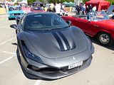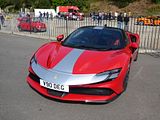 The Ferrari SF90 Stradale (Type F173) is a mid-engine PHEV (Plug-in Hybrid Electric Vehicle) sports car produced by the Italian automobile manufacturer Ferrari. The car shares its name with the SF90 Formula One car with SF90 standing for the 90th anniversary of the Scuderia Ferrari racing team and “Stradale” meaning “made for the road”. The car has a 7.9 kWh lithium-ion battery for regenerative braking, giving the car 26 km (16 mi) of electric range. The car comes with four driving modes depending on road conditions. The modes are changed by the eManettino knob present on the steering wheel. The eDrive mode runs the car only on the electric motors. The Hybrid mode runs the car on both the internal combustion engine and the electric motors and is the car’s default mode. In this mode, the car’s onboard computer (called control logic) also turns off the engine if the conditions are ideal in order to save fuel while allowing the driver to start the engine again. The Performance mode keeps the engine running in order to charge the batteries and keeps the car responsive in order for optimum performance. The Qualify mode uses the powertrain to its full potential. The control logic system makes use of three primary areas: the high-voltage controls of the car (including the batteries), the RAC-e (Rotation Axis Control-electric) torque vectoring system, and the MGUK along with the engine and gearbox. The SF90 Stradale is equipped with three electric motors, adding a combined output of 220 PS to a twin-turbocharged V8 engine rated at a power output of 780 PS at 7,500 rpm. The car is rated at a total output of 1,000 PS at 8,000 rpm and a maximum torque of 800 Nm (590 lb/ft) at 6,000 rpm. The engine is an evolution of the unit found in the 488 Pista and the upcoming F8 Tributo models. The engine’s capacity is now 3,990 cc by increasing each cylinder bore to 88 mm. The intake and exhaust of the engine have been completely modified. The cylinder heads of the engine are now narrower and the all-new central fuel injectors run at a pressure of 350 bar (5,100 psi). The assembly for the turbochargers is lower than that of the exhaust system and the engine sits 50 mm (2.0 in) lower in the chassis than the other mid-engine V8 models in order to maintain a lower centre of gravity. The engine utilises a smaller flywheel and an inconel exhaust manifold. The front wheels are powered by two electric motors (one for each wheel), providing torque vectoring. They also function as the reversing gear, as the main transmission (eight-speed dual-clutch) does not have a reversing gear. The engine of the SF90 Stradale is mated to a new 8-speed dual-clutch transmission. The new transmission is 10 kg (22 lb) lighter and more compact than the existing 7-speed transmission used by the other offerings of the manufacturer partly due to the absence of a dedicated reverse gear since reversing is provided by the electric motors mounted on the front axle. The new transmission also has a 30% faster shift time (200 milliseconds). A 16-inch curved display located behind the steering wheel displays various vital statistics of the car to the driver. The car also employs a new head-up display that would reconfigure itself according to the selected driving mode. The steering wheel is carried over from the 488 but now features multiple capacitive touch interfaces to control the various functions of the car. Other conventional levers and buttons are retained. The interior will also channel sound of the engine to the driver according to the manufacturer. The SF90 Stradale employs eSSC (electric Side Slip Control) which controls the torque distribution to all four wheels of the car. The eSSC is combined with eTC (electric Tractional Control), a new brake-by-wire system which combines the traditional hydraulic braking system and electric motors to provide optimal regenerative braking and torque vectoring. The car’s all-new chassis combines aluminium and carbon fibre to improve structural rigidity and provide a suitable platform for the car’s hybrid system. The car has a total dry weight of 1,570 kg (3,461 lb) after combining the 270 kg (595 lb) weight of the electric system. Ferrari states that the SF90 Stradale is capable of accelerating from a standstill to 100 km/h (62 mph) in 2.5 seconds, 0–200 km/h (124 mph) in 6.7 seconds and can attain a top speed of 340 km/h (211 mph). It is the fastest Ferrari road car on their Fiorano Circuit as of 2020, seven tenths of a second faster than the LaFerrari. The manufacturer claims that the SF90 Stradale can generate 390 kg (860 lb) of downforce at 250 km/h (155 mph) due to new findings in aero and thermal dynamics. The main feature of the design is the twin-part rear wing which is an application of the drag reduction system (DRS) used in Formula One. A fixed element in the wing incorporates the rear light, the mobile parts of the wing (called “shut off Gurney” by the manufacturer) integrate into the body by using electric actuators in order to maximise downforce. The SF90 Stradale uses an evolution of Ferrari’s vortex generators mounted at the front of the car. The car employs a cab-forward design in order to utilise the new aerodynamic parts of the car more effectively and in order to incorporate radiators or the cooling requirements of the hybrid system of the car. The design is a close collaboration between Ferrari Styling Centre and Ferrari engineers. The rear-end of the car carries over many iconic Ferrari Styling elements such as the flying buttresses. The engine cover has been kept as low as possible in order to maximise airflow. According to the car’s lead designer, Flavio Manzoni, the car’s design lies in between that of a spaceship and of a race car. The rear side-profile harkens back to the 1960s 330 P3/4. Deliveries in the UK started in late 2020 and so numbers here are gradually building up.