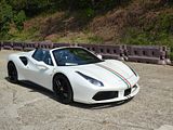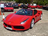 Launched at the 2015 Geneva Show, the 488GTB followed the lead set by the California T in bringing turbocharging into a modern-day, mid-engined V8 Ferrari supercar for the first time. The engine is completely new when compared with its V8 stablemate, not only in components but also in feel and character. It is a twin-turbocharged 3902cc unit whilst that in the California T is 3855cc. In the 488 GTB, it produces 660bhp at 8000rpm and 560lb ft at 3000rpm. Both outputs are significant increases over the normally aspirated 4.5-litre V8 used in the 562 bhp 458 Italia and 597 bhp 458 Speciale, and also greater than the car’s biggest rival, the McLaren 650S. The torque figure of the 488 GTB is such that it also exceeds the 509lb ft at 6000rpm of the normally aspirated V12 used in the range-topping Ferrari F12 Berlinetta. The mighty new engine in the 488 GTB drives the rear wheels through a revised seven-speed dual-clutch automatic gearbox derived from the 458. It features a new ‘Variable Torque Management’ system which, Ferrari says, “unleashes the engine’s massive torque smoothly and powerfully right across the rev range”. The gear ratios are also tuned to “deliver incredibly progressive acceleration when the driver floors the throttle”. The 488 GTB can crack 0-62mph in just 3.0sec, 0-124mph in 8.4sec and reach a top speed of 205mph. Its 0-62mph and 0-124mph times match the McLaren 650S’s, but the Woking car’s top speed is slightly higher at 207mph. The engine also accounts for the ‘488’ element of the car’s name, because each of the engine’s eight cylinders is 488cc in capacity when rounded up. The GTB suffix, standing for Gran Turismo Berlinetta, is a hallmark of previous mid-engined V8 Ferraris such as the 308 GTB. Not only is the new turbo engine more potent than the 4.5-litre V8 from the 458 Italia, but it is also more economical. Combined fuel economy is rated at 24.8mpg, compared with 21.2mpg in the 458 Italia, and CO2 emissions are 260g/km – a 47g/km improvement. Ferrari’s HELE engine stop-start system features on the 488 GTB. Developments on the dynamic side include a second generation of the Side Slip Angle Control system, called SSC2. This allows the driver to oversteer without intruding, unless it detects a loss of control. The SSC2 now controls the active dampers, in addition to the F1-Trac traction control system and E-Diff electronic differential. Ferrari says the result is “more precise and less invasive, providing greater longitudinal acceleration out of corners” and flatter, more stable behaviour during “complex manoeuvres”. Learnings from the Ferrari XX programme have also been incorporated into the 488 GTB, something that Ferrari says allows all drivers and not just professionals, to make the most of its electronic and vehicle control systems. It also claims the 488 GTB is “the most responsive production model there is”, with responses comparable to a track car. The 488 GTB has lapped Ferrari’s Fiorano test track in 1min 23sec – two seconds faster than the 458 Italia, and half a second quicker than the 458 Speciale. The dimensions of the 488 GTB – it is 4568mm in length, 1952mm in width and 1213mm in height – closely match the 458 Italia from which it has evolved. Its dry weight is 1370kg when equipped with lightweight options – 40kg more than the McLaren 650S. The new look, styled at the Ferrari Styling Centre, features several new aerodynamic features that improve downforce and reduce drag. Most notable is the addition of active aerodynamics at the rear through a ‘blown’ rear spoiler, where air is channelled from the base of the glass engine cover under the spoiler. This contributes to the 50% increase in downforce over the 458 Italia. Also new is a double front spoiler, an aerodynamic underbody, a large air intake at the front that references the 308 GTB, a diffuser with active flaps, new positioning for the exhaust flaps and new-look lights. The interior has been redesigned to be made more usable, including new switchgear, air vents and instrument panel. The multi-function steering wheel remains, while the infotainment system gets a new interface and graphics. The Spider followed the closed coupe model six months later,