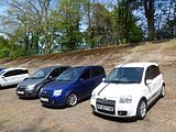 Having a rather short production life was the GTA version of the 147. Launched in 2002. this car was intended to compete with the most sporting Golf and Focus models of the day. as well as injecting more potency into a range which always seemed like it needed more power. Fitted with a 3.2 V6 engine which produced 247 bhp, the 147GTA was the most powerful hot hatch available at the time, and the modifications to the body, including lower sills and wider wheel arches, if anything, made it look even better rather than endowing it with the sort of “after market look” that can afflict some high end performance versions of regular family cars. Performance figures were impressive, with the car able to achieve a top speed of 153 mph. It had a widened body by 15 mm at each side to accommodate the 225/45R17 tyres. Most models had a 6-speed manual transmissions; whilst a smaller number of other models used the semi automatic Selespeed system. Production ran through to 2004 and in total 5,029 147 GTAs were built, 1004 of which were Selespeeds. Only around 300 came to the UK, so this was never a common sighting on British roads. There were several nice examples of the car on show here.