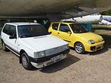 There were a number of Fiat Uno models here, most of them the well-regarded Turbo model, as, like so many cars it is the performance versions that have survived in far greater quantity than the versions that were actually produced in much greater volumes when new. Fiat launched the Uno, the Tipo 146, in January 1983, just one day before the equally iconic Peugeot 205, to replace the elderly Fiat 127. Both were huge sellers, and deservedly so too, but it was the Fiat that sold in greater quantity, with over 8 million examples produced. It was Italy’s best selling car, and by some margin, throughout its 10 year production life, though you might find that hard to believe now, as they were are not a common sight even in Italy. The 127 had revolutionised the supermini market on its launch more than 10 years earlier, and the Uno followed the same format, but brought uptodate. Designed by Giorgetto Giugiaro’s ItalDesign company, its tall, square body utilising a Kamm tail achieved a low drag coefficient of 0.34 won it much praise for interior space and fuel economy as well as its excellent ride and handling, and was widely regarded as the most innovative small car in Europe at the time of its launch. It incorporated many packaging lessons learnt from Giugiaro’s 1978 Lancia Megagamma concept car (the first modern people carrier / MPV / mini-van) but miniaturised. Its tall car / high seating packaging is imitated by every small car today. It reversed the trend for lower and lower built cars. It showed that not just low sleek cars could be aerodynamic, but small, roomy, boxy well packaged cars could be too. There was a lot of activity in the supermini class in 1983, as the Uno hit the UK market a couple of months before the Peugeot 205 – another small European car which became the benchmark for this market sector, enjoying a long production life and strong sales, and just after General Motors launched its new Opel Corsa/Vauxhall Nova. Within a few months of its launch it had gained two new major competitors in the shape of the restyled Ford Fiesta and Nissan’s new Micra. UK sales began in June 1983, and more than 20,000 were sold in its first full year and peaking at more than 40,000 sales in 1988, making it one of the UK’s most popular imported cars during the 1980s. In December 1983, it was European Car of the Year for 1984, finishing narrowly ahead of the Peugeot 205. Initially, the Uno was offered with the 0.9 litre (903 cc) 100-series OHV, 1.1 litre (1116 cc) and 1.3 litre (1301 cc) 128-series SOHC petrol engines and transmissions carried over from the 127. The Uno’s badging was not by the commonly used measurement of engine size but by metric horsepower: 45, 55, 60, 70, or 75. The Uno was available as either a three- or five-door hatchback. It also featured ergonomic “pod” switchgear clusters each side of the main instrument binnacle, (that could be operated without removing the driver’s hands from the steering wheel), although indicators remained on a stalk; an unusual arrangement similar to that used by Citroën. The Uno had MacPherson strut independent front suspension and twist-beam rear suspension with telescopic dampers and coil springs. From 1985, the 1.0 litre (999 cc) SOHC Fully Integrated Robotised Engine (FIRE) powerplant was offered, replacing the 0.9 litre unit. This was a lighter engine, built with fewer parts, and gave improved performance and economy. The most luxurious version, the single-point injected 75 SX i.e., had remote door locks, integrated front foglamps, and the oval exhaust tip also used on the Turbo. In April 1985 the hot hatch version of the first series Uno – the Uno Turbo i.e. – was launched as a three-door only derivative. It competed with the likes of the Ford Fiesta XR2, MG Metro Turbo and Peugeot 205 GTI. The Uno was replaced by the Punto in late 1993, although production for some markets continued for some time after that.
