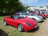 After the 124 Spider ended production, there was a wait of over 10 years before Fiat would produce another open-topped car. Developed between 1990 and 1994 under the project name Tipo B Spider 176, the Barchetta, a small open topped rival to the Mazda MX5 was designed by Andreas Zapatinas and Alessandro Cavazza under the supervision of Peter Barrett Davis and other car designers at the Fiat Centro Stile, and prototyping was carried out by Stola. Production began in February 1995 and lasted until June 2005, with a brief pause due to the bankruptcy of coachbuilder Maggiora. The Barchetta was based on the chassis of the Mark 1 Fiat Punto. The Barchetta has 1,747 cc DOHC petrol engine fitted with variable camshaft timing, used for the first time in a Fiat production car, after being patented in 1970. The engine has 132 PS, and with a weight of 1056 kg (2328 lb) without air conditioning can accelerate to 100 km/h in 8.9 seconds and on to a top speed of 200 km/h (124 mph). It came in various trim levels which offered different features, for example, diamond cross stitch – patterned red leather instead of the standard black leather or fabric seats, alloy wheels instead of steel wheels, or fog-lights as an option. Arguably one of the biggest external cosmetic changes was made by the addition of the third brake light, first introduced by Fiat on the Lido and Riviera in 2000, and on sub models thereafter. The bodies were welded at ILCAS in Sparone Canavese, and final assembly was done in Chivasso by the coachbuilder Maggiora. After Maggiora’s bankruptcy in 2002, Fiat relocated production of the Barchetta to its Mirafiori plant and resumed production two years later. The most notable changes were the revised front spoiler and rear bumper. Production of the car eventually stopped in June 2005, with around 57,700 cars having been built. Production of the Barchetta was limited to LHD cars only, even though the car was marketed and sold in two RHD markets, the United Kingdom and Japan.