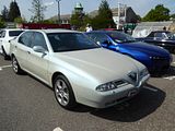 Alfa followed the 156 a couple of years later, in late 1998, with a larger saloon, the 166, hoping to receive the same sort of acclaim with this executive car which was a direct replacement for the 164. It was not forthcoming. For a start, the styling with its drooping and very small headlamps and pointed nose was quite unlike anything else on the market at the time. Part of the difficulty came from the fat that the car had been designed some years before its launch and then put on the back burner as the 156 was given priority. The 166 was initially available with a 155 PS 2.0-litre Twin Spark, a 190 PS 2.5 V6, a 220 PS 3.0 V6 and in some markets a 205 PS V6 2.0 Turbo petrol engine along with a diesel powered L5 2.4 10v common rail turbodiesel version with 136 PS, 140 PS and 150 PS (148 hp) output. The 2.0 TS model used a 5-speed manual gearbox, whilst the 2.5 and 3.0 had the option of a Sportronic automatic gearbox. The 3.0 V6, L5 2.4 and V6 Turbo were otherwise supplied with a six-speed manual gearbox. The top models were named “Super”, and included MOMO leather interior, 17″ alloy wheels, rain sensitive wipers, cruise control, climate control and ICS (Integrated Control System) with colour screen. Options included xenon headlamps, GSM connectivity and satellite navigation. Suspension systems comprised double wishbones at the front and a multi-link setup for the rear. Though the car’s handling characteristics, engine range and elegant exterior design received praise from many, including Top Gear’s Jeremy Clarkson, it did not become a strong seller to rival the dominant German brands, in the European executive car sector. In September 2003, the 166 underwent a substantial revamp, with the début at the Frankfurt Motor Show. As well as upgrades to the chassis, interior, and the engine range, the styling was substantially altered. The new front end resembled the also recently revamped 156, and lost its famous drooping headlights. The 2.0 V6 Turbo model was dropped because of marketing problems, the V6 2.5 was re-rated at 188 PS and a 3.2 litre V6 with 240 PS was introduced. Both the 3.2 litre and the 2.0 Twin Spark models now featured the six-speed manual gearbox, whilst the 3.0 model was retained, but made available only in Sportronic form. In the diesel sector, the L5 2.4 was re-engineered with Multi-Jet technology which allows up to 5 injections per cycle, second stage common rail, with maximum injection pressure of 1400 bar and 4 valves per cylinder, to output a class leading 175 PS, but these changes made little impact on sales volumes. In October 2005, the Alfa Romeo 166 was officially withdrawn from sale in markets for RHD. Sales of the 166 never grew as Alfa had hoped, following the facelift in September 2003, and the additional lack of a diesel engine in the United Kingdom, Australian, and Irish markets limited its reach into company car sectors. In June 2007, production of the 166 effectively ended, with no direct successor. In September 2008, the platform was sold to the Chinese state run manufacturer GAC Group. In total, less than 100,000 units were made.