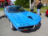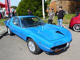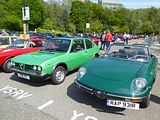 This year there was just a single example of the striking Montreal. During the 1950s, Alfa had undergone a fairly fundamental transformation from producing cars designed for racing or very high-end sports touring road machines, in small quantities, to being a manufacturer of more affordable cars, albeit with a sporting bias to their dynamics. But the desire to produce something exclusive and expensive was not completely lost, and indeed it was re-manifest in the next Alfa to be seen here, the very lovely Montreal. First seen as a concept car in 1967 at Expo 67, the car was initially displayed without any model name, but the public took to calling it the Montreal. It was a 2+2 coupe using the 1.6-litre engine of the Alfa Romeo Giulia TI and the short wheelbase chassis of the Alfa Romeo Giulia Sprint GT, with a body designed by Marcello Gandini at Bertone. One of the two concept cars built for Expo 67 is displayed in the Alfa Romeo Historical Museum in Arese, Italy, while the other is in museum storage. Reaction to the concept was sufficiently encouraging that Alfa decided to put the car into production. The result, the Tipo 105.64, was shown at the 1970 Geneva Motor Show and was quite different from the original, using a 2593 cc 90° dry-sump lubricated V8 engine with SPICA (Società Pompe Iniezione Cassani & Affini) fuel injection that produced around 200 PS (197 hp), coupled to a five-speed ZF manual gearbox and a limited-slip differential. This engine was derived from the 2-litre V8 used in the 33 Stradale and in the Tipo 33 sports prototype racer; its redline was set at 7,000 rpm, unheard of for a V8 at that time. The chassis and running gear of the production Montreal were taken from the Giulia GTV coupé and comprised double wishbone suspension with coil springs and dampers at the front and a live axle with limited slip differential at the rear.Since the concept car was already unofficially known as The Montreal, Alfa Romeo kept the model name in production. Stylistically, the most eye catching feature was the car’s front end with four headlamps partly covered by unusual “grilles”, that retract when the lights are switched on. Another stylistic element is the NACA duct on the bonnet. The duct is actually blocked off since its purpose is not to draw air into the engine, but to optically hide the power bulge. The slats behind the doors contain the cabin vents, but apart from that only serve cosmetic purposes. Paolo Martin is credited for the prototype instrument cluster. The Montreal was more expensive to buy than the Jaguar E-Type or the Porsche 911. When launched in the UK it was priced at £5,077, rising to £5,549 in August 1972 and to £6,999 by mid-1976. Production was split between the Alfa Romeo plant in Arese and Carrozzeria Bertone’s plants in Caselle and Grugliasco outside Turin. Alfa Romeo produced the chassis and engine and mechanicals and sent the chassis to Caselle where Bertone fitted the body. After body fitment, the car was sent to Grugliasco to be degreased, partly zinc coated, manually spray painted and have the interior fitted. Finally, the car was returned to Arese to have the engine and mechanicals installed. It is worth noting that because of this production method, there is not necessarily any correspondence between chassis number, engine number and production date. The Montreal remained generally unchanged until it was discontinued in 1977. By then, production had long ceased already as Alfa were struggling to sell their remaining stock. The total number built was around 3900. None of them were sold in Montreal, Quebec since Alfa did not develop a North American version to meet the emission control requirements in the United States & Canada. The car was both complex and unreliable which meant that many cars deteriorated to a point where they were uneconomic to restore. That position has changed in the last couple of years, thankfully, with the market deciding that the car deserves better, and prices have risen to you whereas a good one would have been yours for £20,000 only a couple of years ago, you would now likely have to pay more than double that.