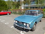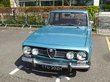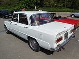 First of the all-new Giulia models to appear was the Berlina, launched in 1962. The styling was quite straight forward, but great attention was paid to detail. The engine bay, cabin and boot were all square shaped. But the grille, the rooflines and details on the bonnet and boot made for an integrated design from bumper to bumper. Thanks to Alfa Romeo using a wind tunnel during its development, the Giulia was very aerodynamic with a drag coefficient of Cd=0.34, which was particularly low for a saloon of the era and not a bad figure even for cars of today. Couple that with the fact that Alfa Romeo was one of the first manufacturers to put a powerful engine in a light-weight car (it weighed about 1,000 kilograms) and thanks to an array of light alloy twin overhead camshaft four-cylinder engine, similar to that of the earlier Giulietta models range, the car had a lively performance which bettered that of many sports cars of the day. The Tipo 105.14 was the first model, with a 1,570 cc Twin Cam engine with single down-draft carburettor generating 91 hp at 6500 rpm. The “TI” nomenclature referred to a class of Italian saloon car racing known as “Turismo Internazionale”, and had previously been applied to higher-performance versions of the 1900 and Giulietta saloons in the 1950s. However, for the Giulia saloon, the Ti was at first the only version available, and later, with the introduction of the TI Super and Super, the TI became the base version for the 1,600 cc engine class. The steering column gearchange (the only one in the Giulia range) was replaced with a floor change for 1964 (Tipo 105.08). Right hand drive cars, available from 1964, only ever had a floor change (Tipo 105.09). Brakes were by drums all around at first. Discs were introduced later, first at the front, and later all around. A brake servo was not fitted at first, but was introduced in later cars. The steering wheel featured the only horn ring ever in the Giulia range. The dashboard with a strip speedo is a notable feature, as is the steering wheel with a horn ring. The Giulia TI was phased out in 1968 and re-introduced as the austerity model 1600 S. Tipo 105.16 was a special racing model introduced in 1963. Quadrifoglio Verde stickers on the front wings were a distinguishing feature. Only 501 were made for homologation and today it is very rare and desirable. The 1,570 cc engine was fitted with two double-choke horizontal Weber 45DCOE carburettors for 110 hp at 6500 rpm. The body was lightened and a floor gearchange was fitted as standard, as were alloy wheels of very similar appearance to the standard steel ones of the TI. The TI’s instrument cluster with its strip speedometer was replaced with a three-instrument binnacle comprising speedometer, tachometer and a multi-gauge instrument (fuel, water temperature, oil temperature and pressure) – these instruments were similar to those fitted to the contemporary Giulia Sprint and Sprint Speciale coupes and Spider convertibles. The steering wheel was a three-spoke item with centre hornpush, also similar to that of the more sporting models. Braking was by discs all around, although the first cars used drums and early disc models lacked a servo which was introduced later. The police cars seen in The Italian Job were of this type. Tipo 105.06 was an austerity model made from 1964 to 1970 with a 1,290 cc single-carburettor engine for 77 hp at 6000 rpm. Four-speed gearbox with floor change fitted as standard (the 1300 was the only Giulia model not fitted with a five-speed gearbox). Though the engine was given a 105 series type number, it was basically the engine from the 101 series Giulietta Ti. This model appears not to have been exported to many markets outside Italy, if at all. Braking was by discs all around, without a servo at first, later with a servo. Tipo 105.26 was introduced in 1965. It transferred the technology from the racing TI Super to a road car, to make the most successful Giulia saloon. 1,570 cc engine with two double-choke Weber 40DCOE carburettors for a milder, but torquier tune than the TI Super – 97 hp at 5500 rpm. There was a new dashboard with two large round instruments (speedo and tacho) and clock, a sportier steering wheel with three aluminium spokes and centre horn push, similar to that of the Ti Super, later changed for one with the horn pushes in the spokes. All-around disc brakes with servo were fitted as standard from the outset. The serpent crest of the Sforza family appears in a badge on the C-pillar and is a distinguishing feature of the Super. For 1968, there was a suspension update, including revised geometry and a rear anti-roll bar. The wheels were changed in size from 5J x 15 to 5J x 14, and tyres from 155/15 to 165/14. For 1970, updates included dual-circuit brakes, centre-mounted handbrake lever to replace under-dash “umbrella handle”, larger external doorhandles, and top-hinged pedals (the latter in left hand drive models only; right hand drive continued with bottom-hinged pedals to the end of production). In 1972, Tipo 105.26 was rationalised into the Giulia 1.3 – Giulia 1.6 range. Tipo 105.39 built from 1965 to 1972. Right hand drive model replaced in 1970 by the 1300 Super. 1,290 cc engine with single down-draft carburettor for 81 hp at 6000 rpm. Unlike the re-deployed 101-series Giulietta engine of the austerity-model 1300, the 1300 ti motor was a 105 series engine, basically that of the sportier GT1300 Junior coupe with different camshaft timing (but the same camshafts) and induction system. Five-speed gearbox. Three-spoke bakelite steering wheel with plastic horn push covering the centre and spokes. Dashboard initially with strip speedo like that of the TI. For 1968, updates included a dashboard based on that of the Super, but with a simpler instrument binnacle, still featuring two large round instruments (speedo and tacho) and a separate fuel gauge, and the same suspension, wheel and tire updates applied to the Gi