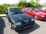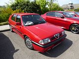 There were a number of Alfa 75s here, the last Alfa model to be developed before the company was bought by Fiat. It was introduced in May 1985, to replace the 116 Series Giulietta with which it shared many components. It was named to celebrate Alfa’s 75th year of production. The body, designed by head of Alfa Romeo Centro Stile Ermanno Cressoni, was styled in a striking wedge shape, tapering at the front with square headlights and a matching grille. The 75 was only ever sold as a four door saloon, though at the 1986 Turin Auto Salon, a prototype 75 estate was to be seen, an attractive forerunner of the later 156 Sportwagon. This version was, however, never listed for sale, being cancelled after Fiat took control of Alfa Romeo. The car, dubbed the 75 Turbo Wagon, was made by Italian coachbuilder Rayton Fissore using a 75 Turbo as the basis. Two estate versions were to be found at the later 1987 Geneva Motor Show; one was this Turbo Wagon and the other was a 2.0 litre version named the Sportwagon. The 75 featured some unusual technical features, most notably the fact that it was almost perfectly balanced from front to rear. This was achieved by using transaxle schema — mounting the standard five-speed gearbox in the rear connected to the rear differential (rear-wheel drive). The front suspension was a torsion bar and shock absorber combination and the rear an expensive de Dion tube assembled with shock absorbers; these designs were intended to optimise the car’s handling; moreover the rear brake discs were fitted at the centre of the rear axle, near the gearbox-differential group. The engine crankshaft was bolted directly to the two-segment driveshaft which ran the length of the underside from the engine block to the gearbox, and rotated at the speed of the engine. The shaft segments were joined with elastomeric ‘doughnuts’ to prevent vibration and engine/gearbox damage. The 2.0 litre Twin Spark and the 3.0 litre V6 were equipped with a limited slip differential. The 75 featured a then-advanced dashboard-mounted diagnostic computer, called Alfa Romeo Control, capable of monitoring the engine systems and alerting the drivers of potential faults. The 75 engine range at launch featured four-cylinder 1.6, 1.8 and 2.0 litre petrol carburettor engines, a 2.0 litre intercooled turbodiesel made by VM Motori, and a 2.5 litre fuel injected V6. In 1986, the 75 Turbo was introduced, which featured a fuel-injected 1779 cc twin-cam engine using Garrett T3 turbocharger, intercooler and oil cooler. In 1987, a 3.0 litre V6 was added to the range and the 2.0 litre Alfa Romeo Twin Cam engine was redesigned to have now two spark plugs per cylinder, the engine was named as Twin Spark. With fuel injection and variable valve timing this engine produced 146 hp. This was the first production engine to use variable valve timing. In North America, where the car was known as the Milano, only the 2.5 and 3.0 V6s were available, from 1987 to 1989. The North American 2.5-litres were fundamentally different from their European counterparts. Due to federal regulations, some modifications were required. Most noticeable from the outside were the ‘America’ bumpers, with the typical rubber accordions in them. Furthermore, these bumpers had thick (and heavy) shock-absorbing material inside them and in addition, they were mounted to the vehicle on shock absorbers. To accommodate these shock absorbers, the ‘America’-bodies were slightly different from the European ones. The North American cars also had different equipment levels (depending on the version: Milano Silver, Milano Gold or Milano Platinum). electrically adjustable outside mirrors, electrically reclining seats and cruise control were usually optional in Europe. The car was also available with a 3-speed ZF automatic gearbox option for the 2.5 V6. Other, more common options such as electrically operated rear windows and an A/C system were standard in the USA. The USA-cars also had different upholstery styles and of course different dashboard panels also indicating speed in mph, oil pressure in psi and coolant temperature in degrees F, and as a final touch the AR control was different, including a seat belt warning light. The European-spec 2.5 V6 (2.5 6V Iniezione or 2.5QV) was officially sold only between 1985 and 1987, although some of them were not registered until 1989. Relatively few of them were sold (about 2800 units), especially when the 155 PS 1.8 Turbo was launched, which in some countries was cheaper in taxes because of its lower displacement. To create a bigger space between the V6 and the inline fours, the 2.5 was bored out to 2959 cc’s to deliver 188 PS and this new engine was introduced as the 3.0 America in 1987. As its type designation suggests, the 3.0 only came in the US-specification, with the impact-bumpers and in-boot fuel tank. However, the European ‘America’s’ were not equipped with side-markers or the door, bonnet and boot lid fortifications. Depending on the country of delivery, the 3.0 America could be equipped with a catalytic converter. In 1988 engines were updated again, the 1.8 litre carburettor version was replaced with fuel injected 1.8 i.e. and new bigger diesel engine was added to the range. In the end of 1989 the 1.6 litre carburettor version was updated to have fuel injection and 1990 the 1.8 Turbo and 3.0i V6 got some more power and updated suspension. The 3.0 V6 was now equipped with a Motronic system instead of an L-Jetronic. The 1.8 Turbo was now also available in ‘America’-spec, but strangely enough not available for the USA market. The 3.0 V6 did make it to the United States, and was sold as Milano Verde. The UK never particularly warmed to the 75 when it was new, but its reputation has got ever stronger as the car ages. Many UK cars were snapped up by the owners of driving schools at racing circuits, thanks to its handling characteristics, but there are also some nice road cars left and there were 