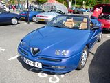 I replaced my 164 with a 916 Series GTV. According to the DVLA records, that car is also no longer with us (though it lived until relatively recently), but, thanks to the much improved rust protection and build quality standards of the late 90s, the survival rate of both the GTV and Spider is good. Whilst values continued to plummet as the cars aged, it was clear that they were classics in the making almost as soon as production ceased and there are plenty of fans of these cars today, and accordingly there were a large number of these cars here today. The 916 Series cars were conceived to replace two very different models in the Alfa range. First of these was the open topped 105 Series Spider which had been in production since 1966 and by the 1990s was long overdue a replacement. Alfa decided to combine a follow on to the Alfetta GTV, long out of production, with a new Spider model, and first work started in the late 1980s. The task was handed to Pininfarina, and Enrico Fumia’s initial renderings were produced in September 1987, with the first clay models to complete 1:1 scale model made in July 1988. Fumia produced something rather special. Clearly an Italian design, with the Alfa Romeo grille with dual round headlights, recalling the Audi-based Pininfarina Quartz, another design produced by Enrico Fumia back in 1981, the proposal was for a car that was low-slung, wedge-shaped with a low nose and high kicked up tail. The back of the car is “cut-off” with a “Kamm tail” giving improved aerodynamics. The Spider would share these traits with the GTV except that the rear is rounded, and would feature a folding soft-top with five hoop frame, which would completely disappear from sight under a flush fitting cover. An electric folding mechanism would be fitted as an option. Details included a one-piece rear lamp/foglamp/indicator strip across the rear of the body, the minor instruments in the centre console angled towards the driver. The exterior design was finished in July 1988. After Vittorio Ghidella, Fiat’s CEO, accepted the design, Alfa Romeo Centro Stile under Walter de Silva was made responsible for the completion of the detail work and also for the design of the interiors, as Pininfarina’s proposal was not accepted. The Spider and GTV were to be based on the then-current Fiat Group platform, called Tipo Due, in this case a heavily modified version with an all new multilink rear suspension. The front suspension and drivetrain was based on the 1992 Alfa Romeo 155 saloon. Chief engineer at that time was Bruno Cena. Drag coefficient was 0.33 for the GTV and 0.38 for the Spider. Production began in late 1993 with four cars, all 3.0 V6 Spiders, assembled at the Alfa Romeo Arese Plant in Milan. In early 1994 the first GTV was produced, with 2.0 Twin Spark engine. The first premiere was then held at the Paris Motor Show in 1994. The GTV and Spider were officially launched at the Geneva Motor Show in March 1995 and sales began the same year. The cars were well received. At launch, many journalists commented that Alfa had improved overall build quality considerably and that it came very close to equalling its German rivals. I can vouch for that, as I owned an early GTV for eighteen months, and it was a well built and reliable car. In 1997 a new engine, a 24-valve 3.0 litre V6, was available for the GTV along with bigger, 12.0 inch brakes and red four-pot calipers from Brembo. The console knobs were changed from round central to rectangle ones and to a three-spoke steering wheel. Some versions were upgraded with different front bumper mesh to bring the wind noise down to 74 dBA. In May 1998 the cars were revamped for the first time, creating the Phase 2 models. Most of the alterations were inside. The interior was changed with new centre console, painted letters on skirt seals, changed controls and switches arrangement and different instrument cluster. Outside, the main changes included chrome frame around the grille and colour-coded side skirts and bumpers. A new engine was introduced, the 142 hp 1.8 Twin Spark, and others were changed: the 2.0 Twin Spark was updated with a modular intake manifold with different length intakes and a different plastic cover. Power output of the 2.0 TS was raised to 153 hp. Engines changed engine management units and have a nomenclature of CF2. The dashboard was available in two new colours in addition to the standard black: Red Style and Blue Style, and with it new colour-coded upholstery and carpets. The 3.0 24V got a six-speed manual gearbox as standard and the 2.0 V6 TB engine was now also available for the Spider. August 2000 saw the revamp of engines to comply with new emission regulations, Euro3. The new engines were slightly detuned, and have a new identification code: CF3. 3.0 V6 12V was discontinued for the Spider and replaced with 24V Euro3 version from the GTV. 2.0 V6 Turbo and 1.8 T.Spark were discontinued as they did not comply with Euro3 emissions. By the 2001-2002 model year, only 2 engines were left, the 2.0 Twin.Spark and 3.0 V6 24V, until the Phase 3 engine range arrived. The Arese plant, where the cars had been built, was closing and, in October 2000, the production of GTV/Spider was transferred to Pininfarina Plant in San Giorgio Canavese in Turin. In 2003 there was another and final revamp, creating the Phase 3, also designed in Pininfarina but not by Enrico Fumia. The main changes were focused on the front with new 147-style grille and different front bumpers with offset numberplate holder. Change to the interior was minimal with different centre console and upholstery pattern and colours available. Instrument illumination colour was changed from green to red. Main specification change is an ASR traction control, not available for 2.0 TS Base model. New engines were introduced: 163 hp 2.0 JTS with direct petrol injection and 237 hp 3.2 V6 24V allowing a 158 mph top speed. Production ceased in late 2004, though some cars were sti