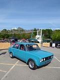 It was no surprise to find this 124 Special T here, as it belongs to event organiser Michael Ward and has recently returned to the road after a very long rebuild. At the November 1970 Turin Motor Show Fiat introduced a round of updates for the entire saloon and wagon 124 range, as well as a new model variant—the 124 Special T. All models had gained air outlets added to the C-pillar for better ventilation, and a split brake circuit; while some features previously exclusive to the 124 Special such as servo-assisted brakes, back-up light and an alternator were made standard across the range. Berlina and Familiare both had a new grille with alternated chrome and black horizontal bars, and larger bumper over-riders. Additionally the Berlina had large, nearly square tail lamps made up by two stacked rectangular elements. The renewed Special sported a completely redesigned front end. A black, square-mesh radiator grille was crossed by a horizontal bright bar joining the dual headlamps; each of the four round lamps was set in its own square, bright-edged housing. The grille-headlamps assembly was flanked by the turn indicators. Front and rear the bumpers had lost their over-riders, replaced by full-width rubber strips. At the rear the lamps were also new—still horizontal and rectangular in shape unlike the ones used on the standard saloon—and the whole tail panel was surrounded by a chromed profile. Inside there was a new dashboard with imitation wood inserts, carpets instead of rubber mats, and cloth upholstery. The “T” in 124 Special T stood for twin cam, hinting at the car’s 1,438 cc dual overhead camshaft engine, derived from the Sport Coupé and Spider but in a milder state of tune. Coded 124 AC.300, this engine had revised valve timing and fuel system and produced 80 DIN-rated PS at 5,800 rpm and 112 DIN-rated Nm (83 lb/ft) of torque at 4,000 rpm. According to the manufacturer top speed was 160 km/h (99 mph). Externally the Special T was identical to the Special, save for model badging at the rear. There are only a couple of 124 Special T left in the UK, and whilst this one is (quite intentionally) not original any more, it is really rather splendid.