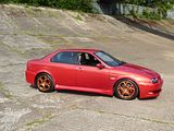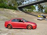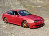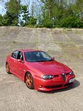 The 156 GTA cars were launched at the Frankfurt Motor Show in September 2001. Named after the Alfa Romeo GTA from the 1960s, the letters GTA meaning Gran Turismo Alleggerita (English: lightened Grand Tourer). 2,973 berlinas and 1,678 Sportwagons were built until the GTA production stopped in October 2005 as the 156 gave way to the Alfa Romeo 159. The GTA came with the 3.2 litre Bussone V6 engine (The big Busso, so called after legendary Ferrari engineer Giuseppe Busso), the largest capacity version of the much loved V6 engine. With a 93 mm bore and a 78 mm stroke giving it a capacity of 3,179 cc, it generated 250 PS (247 hp) and 220 lb/ft of torque. After market Alfa Romeo specialist Autodelta produced performance versions up to 3.7 litres and 400 PS. The European Touring Car Championship winning 156 GTA was however running a 2.0 litre 4-cylinder 300 PS engine due to class regulations. The GTA variants were equipped with either a six-speed manual transmission or six-speed Selespeed (paddles in steering wheel, hydraulically operated robotised) gearbox, had a lowered and stiffened suspension, a distinctive body kit, wider rear arches and leather interior. The suspension was specifically made for the GTA by Fiat Research Centre and Fiat Auto Design and Development Department. Steering was also made faster, only 1.7 turns from lock to lock compared to 2.1 in normal models. The GTA had also larger brakes (Brembo), with 12″ front discs and 10.8″ at the rear. The front discs were later upgraded to 13 ” to cope with the performance potential. Even though the name suggests a light car, the GTA isn’t any lighter than other 156s, as it was actually 91 kilograms (201 lb) heavier than the 2.5 litre V6 engined version. The GTA did not get the Giugiaro designed facelift introduced to the 156 in 2002, but continued with the acclaimed Walter de Silva design to the very end of production.
