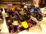 This one is Daniel Ricciardo’s Red Bull Renault RB10 F1 car from 2014, a Formula One racing car designed by Adrian Newey for Infiniti Red Bull Racing to compete in the 2014 Formula One season. It was driven by reigning World Drivers’ Champion Sebastian Vettel and Daniel Ricciardo, who was promoted from sister team Scuderia Toro Rosso after Mark Webber announced his retirement from the sport at the end of the 2013 season. The RB10 was designed to use Renault Sport’s new 1.6-litre V6 turbocharged engine, the Renault Energy F1-2014. The car was launched on 28 January 2014 at the Circuito de Jerez. Keeping with the tradition of naming his race cars, Sebastian Vettel named the RB10 as “Suzie”. The early stages of the RB10’s development were seriously limited by several recurring issues, with the team managing less than 100 kilometres (62 miles) of running during the first test in Jerez de la Frontera, less than any other team which attended the test.[10] The team—like fellow Renault-powered outfits Scuderia Toro Rosso and Caterham—were affected first by problems with the physical Renault Energy F1-2014 unit that prevented the individual components of the power unit from working together. Once these issues were resolved, the team experienced problems with the software governing the turbo unit. Red Bull also suffered from unique problems arising from the tight packaging of the RB10 chassis, which caused temperatures within the car to climb so high that parts started to burn. The team’s problems continued during the second test at the Bahrain International Circuit, where they were forced to run with the Energy Recovery System (ERS) disabled on Renault’s advice, robbing the RB10 of up to 150 bhp. Although Sebastian Vettel was able to complete over seventy laps of the circuit on the first of four days of testing, the team completed less than forty more over the remaining three days as the chassis was further plagued by mechanical issues. As the test ended, Red Bull had completed fewer laps than any other team save for Lotus and Marussia, and the fastest times recorded by Vettel and Daniel Ricciardo were outside 107% of the fastest time recorded during the test; had the test been treated as a qualifying session, neither Vettel nor Ricciardo would have qualified for a race. The final test of the season—also held in Bahrain—was little better; although Ricciardo recorded the car’s fastest lap time, it was still two and a half seconds slower than the fastest lap time recorded by Felipe Massa. When Vettel returned to the car, he failed to complete a lap before the car broke down, and team principal Christian Horner admitted the team had no idea when the problems with the car would be fixed. The start of the season was unfortunate for Red Bull, with technical problems causing Vettel to retire in the opening laps of the Australian Grand Prix. A second-place finish for Ricciardo was stripped due to illegal fuel flow throughout the race. Despite warnings from officials throughout the race, Red Bull used their own fuel flow system rather than the mandated FIA item, claiming the FIA unit was faulty. Vettel was able to achieve third place in Malaysia, though a botched pit stop and front wing damage forced Ricciardo to retire from the race. Ricciardo and Vettel would both go on to finish in the points at the Bahrain Grand Prix, finishing fourth and sixth, respectively. They would repeat this feat once more at the Chinese Grand Prix, with Ricciardo finishing fourth again, and Vettel behind him in fifth. The form of the RB10 improved at the Spanish Grand Prix, where Ricciardo achieved a third-place finish, and Vettel finished fourth, also ending Mercedes’s streak of setting the fastest laps of every race. Ricciardo repeated a third place podium finish in Monaco, managing to hound Lewis Hamilton in a battle for second after the latter had problems with his vision. Conversely, Vettel retired early on due to power unit issues. The RB10 took its first win of the 2014 season when Ricciardo won the seventh race of the season, in Canada. The win was also Ricciardo’s first in Formula One, while Vettel was also able to record his second podium finish of the season, finishing in third place. Red Bull were not able to repeat a great result at its home race in Austria, with Ricciardo finishing in eighth, and Vettel retiring for the third time, due to a lack of power, and later front wing damage. Ricciardo and Vettel bounced back to place third and fifth, respectively in Britain. Ricciardo gave the RB10 its second and third wins at the Hungarian and the Belgian Grands Prix respectively. The team finished second in the Constructors’ Championship, with Ricciardo finishing third in the Drivers’ Championship, beating Vettel, who finished fifth. At the final race of the season in Abu Dhabi, the Red Bulls were excluded from qualifying for having a front wing which was over the wing flex limits. As a result, the Red Bull cars were sent to the back of the grid. The team was, however, able to claw back a decent result with Daniel Ricciardo finishing fourth and the departing Sebastian Vettel finishing in eighth place.