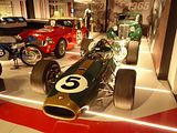 There’s a special display which focuses on the BRM team. Most of the historic BRM cars are to be found in the company’s private collection up at Bourne in Lincolnshire but there is one here to bring the wall panels to life, a P48/4 from 1960. The BRM P48 was a Formula One racing car raced in 1960. It was BRM’s first rear-engined car. With rear-engined cars in the ascendancy, BRM hastily reworked the front-engined, now five-year-old P25. The car proved to be slow and unreliable, and was replaced by the P48/57 the following year. Aside from the placement of the driver and engine, the P48 was mechanically the same as the outgoing P25. It featured the same 2.5 litre straight-4 engine producing 275 horsepower. The P48 also featured a single brake disc at the rear mounted directly to the gearbox. The rear bodywork was cut off to aid cooling, which exposed the unlovingly nicknamed “bacon slicer” rear brake. During 1960 Tony Rudd designed his Mark II version of the car, with a conventional 2 disc rear brake layout, simple rear wishbone suspension and a much lower profile. This resulted in a much better handling car, and for the 1961 Formula One season BRM based their chassis designs on the Mark II. For 1960, BRM campaigned three P48s for Joakim Bonnier, Graham Hill, and Dan Gurney. The P48 debuted in the second race of the season, the Monaco Grand Prix. To the surprise of everyone, including the team, all three cars finished. Bonnier scored points for fifth. However, this proved to be a false hope, as each driver finished only once more. At the Dutch Grand Prix, Hill finished a respectable third behind the Coventry Climax engined Cooper and Lotus of Jack Brabham and Innes Ireland. Sadly, Gurney’s rear brake failed on the entry to Zandvoort’s first hairpin; his BRM rolled into the stands, killing one spectator and injuring several others. After the Zandvoort disaster, BRM scored just once more with Bonnier in the United States Grand Prix. BRM finished the season with a disappointing 8 points.