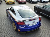 There were surprisingly few Audi models here First to attract my attention was this distinctively liveried TT RS. With its world debut at the 2009 Geneva Auto Show, and developed by Audi’s high-performance subsidiary quattro GmbH at Neckarsulm, Germany, Audi released the first ever compact sports car Audi “RS” variant – the Audi TT RS, which was available from 2009 in Coupé and Roadster variants. The TT RS featured an all-new 2.5-litre Inline-5 turbocharged petrol engine. This new 183 kg (403 lb) engine produces a DIN-rated power output of 340 PS (335 bhp) from 5,400 to 6,700 rpm, and torque of 450 Nm (332 lb/ft) at 1,600–5,300 rpm. Ever since the original Audi “RS” model – the Audi RS2 Avant – all Audi “RS” models were assembled at the quattro GmbH factory in Neckarsulm. The TT RS is the first Audi RS vehicle that didn’t have any of its assembly performed in Neckarsulm but was completely assembled in the Audi factory in Győr, Hungary, alongside the base Audi TT. The TT RS has a new short-shift close-ratio six-speed manual transmission, and like all “RS” models, is only available with four-wheel-drive, with the TT RS using a specially adapted version of the latest generation multi-plate clutch from Haldex Traction. Additions to the quattro system include a constant velocity joint before the cardan propeller shaft, and a compact rear-axle differential – upgraded to cope with the increased torque from the five-cylinder turbo engine. Like the TTS, the TT RS has a 10 mm (0.4 in) lower ride height, optional “Audi Magnetic Ride”, and rides on standard 18-inch wheels with 245/45 ZR18 tyres (optional 19″ or 20″ wheels are also available). The brakes are upgraded to include two-piece cross-drilled and radially vented front discs, sized at 370 mm (14.6 in) in diameter. The front discs are clamped by gloss black painted four-piston calipers, adorned with the RS logo. Rear ventilated discs are sized at 310 mm (12.2 in) in diameter. It includes a fixed rear spoiler (retractable optional), and has black interior with heated Alcantara/leather sports seats (Silk Nappa, Fine Nappa leather optional). The Recaro “RS bucket” seats, first seen in the Audi B7 RS4 are also available as an option. Also carried over from the B7 RS4 is the ‘Sport’ button, which sharpens the throttle response and deepens the exhaust note, and a three-stage user-selectable Electronic Stability Programme (ESP). Official performance figures indicate the TT RS Coupé will accelerate from a standstill to 100 km/h (62.1 mph) in 4.5 seconds (4.7 seconds for the Roadster), with an electronically limited top speed of 250 km/h (155 mph). There is a factory option to de-restrict the top speed to 280 km/h (174.0 mph). The Coupé has a kerb weight of 1,450 kg (3,197 lb), and the Roadster weighs in at 1,510 kg (3,329 lb). As of 2010 the TT-RS is available with the 7-speed DSG automatic transmission capable of handling the torque delivered by the engine. The 6-speed gearbox used in the TT-S cannot cope with 450 N⋅m (332 lbf⋅ft) which is why the TT-RS initially was offered only with a manual transmission. The car went on sale in March 2009, with delivery beginning in summer. In 2010, the TT-RS was confirmed for the US market. The decision was influenced by an internet petition to bring the TT-RS stateside, which succeeded with over 11,000 signatures. The TT-RS arrived in Q3 2011 as a 2012 model. In 2012, the TT RS plus was launched. It featured the uprated version of the TT RS’ engine that had originally been developed for the RS Q3 concept car; this version of the engine produces 355 hp (360 PS) at 5500 rpm, and 343 lb/ft (465 Nm) of torque at 1650 rpm. As a result of this power increase, Audi claimed that the 0-62 mph (100 km/h) time had decreased to 4.3 seconds for the manual version, and 4.1 seconds for the S-tronic version. In addition to this, Audi raised the top speed limiter, with the TT RS plus being restricted to 174 mph (280 km/h).