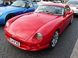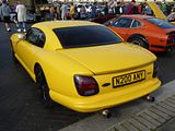 The Cerbera was first shown as a prototype at the 1994 Birmingham Show, entering production in 1996. The name derives from Cerberus the three-headed beast of Greek legend that guarded the entrance of Hades. This was the third car manufactured by TVR under the leadership of Peter Wheeler, and it represented three firsts for the Wheeler-led company: the first hard-top—the Griffith and the Chimaera were both convertibles; the first 2+2—TVRs were traditionally two-seaters; the first to be driven by TVR’s own engines—historically, TVR had purchased engines from mainstream manufacturers like Rover, Ford and Triumph. Prior to the Cerbera, TVR had purchased V8 engines from Rover and then tuned them for their own use. When Rover was purchased by BMW, Peter Wheeler did not want to risk problems should the Germans decide to stop manufacturing the engine. In response, he engaged the services of race engineer Al Melling to design a V8 engine that TVR could manufacture in-house and even potentially offer for sale to other car-makers. In an interview for the television programme Top Gear, Wheeler explained “Basically, we designed the engine as a race engine. It was my idea at the time that if we wanted to expand, we ought to make something that we could sell to other people. We’ve ended up with a 75-degree V8 with a flat-plane crank. The bottom-half of the engine to the heads is exactly as you would see in current Formula One engines.” Wheeler was quoted at the time of the car’s launch as saying that the combination of light weight and high power was too much for a road car, a quote which ensured much free publicity in the press. Enthusiasts still argue about whether this was a typical example of Wheeler’s legendary frankness, or an equally typical example of his PR chief Ben Samuelson’s knack for saving on advertising costs by creating a story. The result was dubbed the “Speed Eight” (official designation ‘AJP8’) after Al Melling, John Ravenscroft and Peter Wheeler, a 4.2 litre V8 producing 360 hp and gave the Cerbera a top speed of 185 mph (297 km/h). A 4.5 litre version of the engine was later offered with 420 hp. The AJP8 has one of the highest specific outputs of any naturally aspirated V8 in the automotive world at 83.3 hp/litre for the 4.2 and 93.3 hp/litre for the 4.5. Later models of the 4.5 litre engine had the ‘Red Rose’ option, which increased output to 440 bhp (97.7 hp/litre) when fuelled with super-unleaded (high octane) and the driver pushed the unmarked button on the dashboard which altered the engine mapping to suit. In some cases, real-world outputs for production V8s (4.5 in particular) were down from TVRs quoted output. Some of these have seen some form of modification (ECU, induction, exhaust etc.) to bring the power back up to the factory quoted output. One of the attractions of the V8 Cerberas for many owners was the loud backfire produced on overrun, particularly at low speeds. In fact this was the result of an argument at the factory between one of TVR’s executives and the engineers mapping the engine. The engineers wanted to map out this “irregularity” to improve fuel efficiency and CO2 emissions, whilst the executive insisted it was exactly the kind of thing owners would like. In the end a compromise was reached in which the popping and banging remained on the 4.5 litre cars. With the success of the Speed Eight program, Wheeler also undertook the design of a “Speed Six” engine to complement it. This engine also made its debut in the Cerbera but was a 4.0 litre inline slant six design with four valves per cylinder to the Speed Eight’s two. In service however it gained a reputation for unreliability and many engines had to be rebuilt. The car itself was designed from the start as a four-seater. The rear seats are smaller than the front, a design commonly referred to as a “2+2”. However, the interior is designed so that the passenger seat can slide farther forward than the driver’s seat. This allows more room for the person sitting behind the front passenger. TVR have referred to this as a “3+1” design. TVR maintained its tradition of building cars that were not only exceptionally powerful but also very light for their size and power output. The Cerbera’s weight was quoted by TVR at 1100 kilograms, although customers claimed the weight varied between 1,060 kg (2,337 lb) and 1,200 kg (2,646 lb). The dashboard was designed especially for the Cerbera and uses a two-spar steering wheel as opposed to the typical three-spar previously found in most TVRs. The reason for this is that minor instruments are located on a small panel below the steering wheel and a third spar in the wheel would have made them difficult to read. Like all TVRs of the Peter Wheeler era, the Cerbera had a long-travel throttle to compensate for the lack of electronic traction-control and very sharp steering. The V8 powered cars were two turns from lock to lock and the Speed Six car was 2.4 turns. This made it easier for experienced drivers to maintain or regain control of the car in the event of a loss of traction but some less experienced drivers complained that it made the cars feel “twitchy” and more responsive than they would otherwise have preferred. In 2000, TVR changed the styling of the car slightly by modifying the headlights to more closely resemble those seen in the TVR Tuscan. The “facelift” features were available with all three engine configurations. In addition, the cars equipped with the 4.5 litre engine were offered with the “lightweight” option, reducing the overall weight through the use of lighter body panels and a slightly reworked interior. The final car was made in 2006.