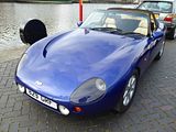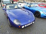The Griffith was the first of the modern generation TVRs. First seen as a concept at the 1990 British Motor Show, it wowed the crowds sufficiently that unlike the Show Cars of precediing years, may of which were never seen again, Peter Wheeler and his small team in Blackpool immediately set about preparing it for production. It took until mid 1992 before they were ready. Like its forerunner namesakes, the Griffith 200 and Griffith 400, the modern Griffith was a lightweight (1048 kg) fibreglass-bodied, 2-door, 2-seat sports car with a V8 engine. Originally, it used a 4.0 litre 240 hp Rover V8 engine, but that could be optionally increased to a 4.3 litre 280 hp unit, with a further option of big-valve cylinder heads. In 1993, a TVR-developed 5.0 litre 340 hp version of the Rover V8 became available. All versions of the Griffith used the Lucas 14CUX engine management system and had a five-speed manual transmission. The car spawned a cheaper, and bigger-selling relative, the Chimaera, which was launched in 1993. 602 were sold in the first year and then around 250 cars a year were bought throughout the 90s, but demand started to wane, so in 2000, TVR announced that the Griffith production was going to end. A limited edition run of 100 Special Edition (SE) cars were built to mark the end of production. Although still very similar to the previous Griffith 500 model, the SE had a hybrid interior using the Chimaera dashboard and Cerbera seats. Noticeably, the rear lights were different along with different door mirrors, higher powered headlights and clear indicator lenses. Some also came with 16-inch wheels. Each car came with a numbered plaque in the glove box including the build number and a Special Edition Badge on its boot. All cars also had a unique signature in the boot under the carpet. The SEs were built between 2000 and 2002, with the last registered in 2003. A register of the last 100 SEs can be found at TVR Griffith 500 SE Register. These days, the Griffith remains a much loved classic and to celebrate the car, the owners have a meet called “The Griff Growl.”