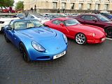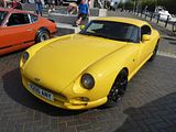 The T350 cars were made from 2002 to 2006. They were based on the TVR Tamora, and powered by TVR’s Speed Six engine in 3.6 litre form, producing 350 hp. The T350 was available in coupe and targa versions, the coupe version being known as the T350C, and the targa version the T350T. The T350 later formed the base of the TVR Sagaris. Function dominates form evident by the car’s aero-dynamic design which has been created for maximum downforce and minimal drag. The smooth frontal nose and the sharp rear cut tail allows the car to be aerodynamically efficient while reducing drag. The sloping rear line of the car ensures that the car generates minimum lift at high speeds. The car takes many components from the entry level Tamora such as the interior, multi-function display and analogue metres. The optional Sport package adds extra options in the multi-functional display such as lap-times, oil temperature and water temperature. The fastback design of the car gives the customer an advantage of increased boot space. The powerful Speed Six engine is a proven race winning unit and very responsive suiting the car’s aggressive character with a 0 – 100 km/h time of just 4.4 seconds.