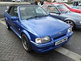 A sporting version of Ford’s front wheel drive Escort was announced at the same time as the “cooking” 1.1, 1.,3 and 1,6 litre cars in October 1980. This was the XR3, and it came initially with a carb fed 1.6 litre engine generating 105 bhp and had a four speed gearbox. Fuel injection finally arrived in October 1982 (creating the XR3i), eight months behind the limited edition (8,659 examples), racetrack-influenced RS 1600i. The Cologne-developed RS received a more powerful engine with 115 PS, thanks to computerised ignition and a modified head as well as the fuel injection. For 1983, the XR3i was upgraded to 115bhp thanks to the use of fuel injection and a five speed transmission had been standardised. Both variants proved very popular, getting a significant percentage of Escort sales and also as a slightly more affordable alternative to a Golf GTi. For those for whom the performance was not quite enough, Ford had an answer, withe the RS Turbo. This 132 PS car was shown in October 1984, as a top of the range car, offering more power than the big-selling XR3i and the limited production RS1600i. Going on sale in the spring of 1985, it proved to be somewhat of a disappointment, with the chassis coming in for severe criticism. The RS Turbo Series 1 was only marketed in a few European nations as production was limited to 5,000 examples, all in white. They were well equipped, with the alloy wheels from the limited production RS 1600i, Recaro seats, and a limited slip differential. One car only was finished in black; it was built especially for Lady Diana. Ford facelifted the entire Escort range in January 1986, and a few months later, a revised Series 2 RS Turbo emerged, which adopted the styling changes of the less potent models, and the new dashboard, as well as undergoing a mechanical revision and the addition of more equipment including anti-lock brakes. The Series 2 cars were available in a wider range of colours. Seen here were examples of the RS1600i, XR3i Cabriolet and the RS Turbo.