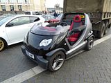 In 2002, Smart introduced a limited-edition variant of the City Cabrio, called the Crossblade. It was a very pure roadster version, without proper windscreen, nor roof or conventional doors, limiting its use. Its weight was still 740 kg. The Brabus-tuned engine developed 71 PS)from its 599 cc engine. After Robbie Williams purchased Crossblade number 008, Smart began a marketing association with the British singer, using Williams to promote the brand.