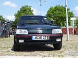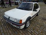 Mindful of the success of the Golf GTi, in the class above, and how a small car with good handling could take more power, as the Mini Cooper had proved, Peugeot came up with the GTi in early 1984. The first models had a 1.6 litre XU5J engine, producing 105 PS, which was uprated in 1987 with a cylinder head with larger valves thus becoming XU5JA, which took the power output up to 115 bhp. Visually the car retained the good looks of the 3 door version of the regular models, but it featured plastic wheel arch extensions and trim, beefier front and rear bumper valances and judicious use of red badging and trim. The shell also underwent some minor changes, including larger wheel arches (to suit the larger wheels , and the suspension was redesigned and sat lower on the GTI with stiffer springs, different wishbones and a drop-linked anti-roll bar. Red was a dominant colour inside. The car was an instant hit. At the end of 1986, Peugeot followed up with a more potent model, the 1.9 GTi, whose XU9JA engine produced 128 PS. Internally the engine of this car and the 1.6 model are very similar, the main differences on 1.9 litre versions being the longer stroke, oil cooler, and some parts of the fuel injection system. The shorter stroke 1.6 litre engine is famed for being revvy and eager, while the 1.9 litre feels lazier and torquier. Outside the engine bay the main differences between the 1.6 GTi and the 1.9 GTi are half-leather seats on the 1.9 GTi vs. cloth seats and disc brakes all-round (1.9 GTi) vs. discs at the front and drum brakes at the back; as well as the 14-inch Speedline SL201 wheels on the 1.6 GTi vs. 15 inch Speedline SL299 alloys on the 1.9 GTi. The 205 is still often treated as a benchmark in group car tests of the newest GTI models or equivalent. Peugeot itself has never truly recreated this success in future GTI models, although they came very close with the highly regarded GTI-6 variant of the Peugeot 306.