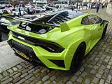 The Huracán STO (Super Trofeo Omologato) is a track focused variant of the Huracan. It is completely different from other Huracan variants. The STO has a taller rear wing with a roof snorkel for engine cooling. There is a shark fin aerodynamic device connecting the roof snorkel with the rear wing. The engine cover is reminiscent of the Lamborghini Super Trofeo Evo race cars. The entire hood opens to reveal a small compartment for storing racing equipment, the body is made of 75% carbon fibre, the engine and the power output of the STO is the same as the Huracan Perfomante and the Huracan Evo but it has Rear-wheel drive with Rear Wheel Steering system, it has CCMR Brakes inspired from Formula 1. The STO comes with three new modes: STO for road driving, TROFEO for fast lap times on dry tarmac, and PIOGGIA for wet weather driving. The bucket seats on the interior feature racing harnesses.