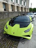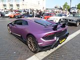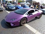 Entry level Lamborghini is the Huracan. Replacing Lamborghini’s sales leader and most produced car, the Gallardo, the Huracán made its auto show debut at the March 2014 Geneva Auto Show, and was released in the second quarter of 2014. The name of the Huracan LP 610-4 comes from the fact that this car has 610 metric horsepower and 4 wheel drive. Huracán (huracán being the Spanish word for hurricane) is inspired by a Spanish fighting bull. Continuing the tradition of using names from historical Spanish fighting bulls, Huracán was a bull known for its courage that fought in 1879. Also Huracan is the Mayan god of wind, storm and fire. Changes from the Gallardo included full LED illumination, a 12.3 inch full-colour TFT instrument panel, Fine Nappa leather and Alcantara interior upholstery, redesigned dashboard and central tunnel, Iniezione Diretta Stratificata (IDS, essentially an adapted version of parent Audi’s Fuel Stratified Injection) direct and indirect gasoline injections, engine Stop & Start technology, EU6 emissions regulation compliance, Lamborghini Doppia Frizione (LDF) 7-speed dual-clutch transmission with 3 modes (STRADA, SPORT and CORSA), 20 inch wheels, carbon-ceramic brake system, optional Lamborghini Dynamic Steering variable steering system and MagneRide electromagnetic damper control. In early 2015, the Huracán appeared on Top Gear. It got a neutral review from Richard Hammond who said that it was too tame to be a “proper Lamborghini.” However, it got around the Top Gear test track in 1:15.8 which is faster than any other Lamborghini to go around the track to date, including the Aventador. Now it has been available in the UK for around seven years, there are now quite a few on our roads, so it was no surprise to find the model here.