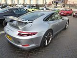 Porsche unveiled the facelifted 991.2 GT3 at the 2017 Geneva Motor Show. Extensive changes were made to the engine allowing for a 9,000 rpm redline from the 4.0 litre flat-six engine derived from Porsche 911 GT3 R and Cup racing cars. The engine has a power output of 500 PS (493 bhp) and 460 Nm (339 lb/ft) of torque. Porsche’s focus was on reducing internal friction to improve throttle response. Compared to the 991.1, the rear spoiler is 0.8 inch taller and located farther back to be more effective resulting in a 20% increase in downforce. There is a new front spoiler and changes to the rear suspension along with larger ram air ducts. The car generates 154 kg (340 lb) of downforce at top speed. The 991.2 GT3 brought back the choice between a manual transmission or a PDK dual clutch transmission. Performance figures include a 0-60 mph acceleration time of 3.8 seconds (3.2 seconds for the PDK version) and a quarter mile time of 11.6 seconds. The GT3 can attain a top speed of 319 km/h (198 mph).