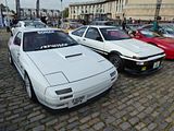 The second generation RX7, also known initially as the Series 4, appeared in 1985. Still known as the Mazda Savanna RX-7 in Japan, the new car featured a complete restyling reminiscent of the Porsche 924. Mazda’s stylists, led by Chief Project Engineer Akio Uchiyama, focused on the Porsche 924 for their inspiration in designing the FC because the new car was being styled primarily for the American market, where the majority of first-generation RX-7s had been sold. This strategy was chosen after Uchiyama and others on the design team spent time in the United States studying owners of earlier RX-7s and other sports cars popular in the American market. The Porsche 944 was selling particularly well at the time and provided clues as to what sports-car enthusiasts might find compelling in future RX-7 styling and equipment. While the SA22/FB was a purer sports car, the FC tended toward the softer sport-tourer trends of its day, sharing some similarities with the HB series Cosmo. Handling was much improved, with less of the oversteer tendencies of the FB. The rear end design was vastly improved from the FB’s live rear axle to a more modern, Independent Rear Suspension (rear axle). Steering was more precise, with rack and pinion steering replacing the old recirculating ball steering of the FB. Disc brakes also became standard, with some models (S4: Sport, GXL, GTU, Turbo II, Convertible; S5: GXL, GTUs, Turbo, Convertible) offering four-piston front brakes. The rear seats were optional in some models of the FC RX-7, but are not commonly found in the American Market. Mazda also introduced Dynamic Tracking Suspension System (DTSS) in the 2nd generation RX-7. The revised independent rear suspension incorporated special toe control hubs which were capable of introducing a limited degree of passive rear steering under cornering loads. The DTSS worked by allowing a slight amount of toe-out under normal driving conditions but induced slight toe-in under heavier cornering loads at around 0.5 Gs or more; toe-out in the rear allows for a more responsive rotation of the rear, but toe-in allowed for a more stable rear under heavier cornering. Mazda also introduced Auto Adjusting Suspension (AAS) in the 2nd generation RX-7. The system changed damping characteristics according to the road and driving conditions. The system compensated for camber changes and provided anti-dive and anti-squat effects. The Turbo 2 uses a turbocharger with a twin scroll design. The smaller primary chamber is engineered to cancel the turbo lag at low engine speeds. At higher revolutions, the secondary chamber is opened, pumping out 33% more power than the naturally aspirated counterpart. The Turbo 2 also has an air-to-air intercooler which has a dedicated intake on the bonnet. The intake is slightly offset toward the left side of the bonnet. Though about 800 lb (363 kg) heavier and more isolated than its predecessor, the FC continued to win accolades from the press. The FC RX-7 was Motor Trend’s Import Car of the Year for 1986, and the Turbo II was on Car and Driver magazine’s 10Best list for a second time in 1987. In the Japanese market, only the turbo engine was available; the naturally-aspirated version was allowed only as an export. This can be attributed to insurance companies in many Western nations penalising turbo cars (thus restricting potential sales). This emphasis on containing horsepower and placating insurance companies to make RX-7’s more affordable seems ironic in retrospect. Shortly after the discontinuance of the second generation RX-7s in 1992, an outright horsepower “arms race” broke out between sports car manufacturers, with higher and higher levels of power required to meet buyer demands. This rising horsepower phenomena arose from the US CAFE standards remaining stable while engine technologies marched forward rapidly. Mazda sold 86,000 RX-7s in the US alone in 1986, its first model year, with sales peaking in 1988. Mazda introduced a convertible version of the RX-7 in 1988 which featured a removable rigid section over the passengers and a folding textile rear section with heatable rear glass window. Power operated, lowering the top required unlatching two header catches, power lowering the top, exiting the car (or reaching over to the right side latch), and folding down the rigid section manually. Mazda introduced with the convertible the first integral windblocker, a rigid panel that folded up from behind the passenger seats to block unwanted drafts from reaching the passengers—thereby extending the driving season for the car in open mode. The convertible also featured optional headrest mounted audio speakers and a folding leather snap-fastened tonneau cover. The convertible assembly was precisely engineered and manufactured, and dropped into the ready body assembly as a complete unit—a first in convertible production. Several car magazines at the time lauded the convertible. Production ceasing in 1991 after Mazda marketed a limited run of 500 example for 1992 for the domestic market only. In Japan, the United Kingdom, and other regions outside the US, a turbocharged version of the convertible was available. Mazda introduced the 10th Anniversary RX-7 in 1988 as a limited production run based on the RX-7 Turbo II. Production was limited to 1,500 models. The 10th Anniversary RX-7 features a Crystal White (paint code UC) monochromatic paint scheme with matching white body side mouldings, taillight housings, mirrors and 16-inch alloy 7-spoke wheels. There were two “series” of 10th Anniversary models, with essentially a VIN-split running production change between the two. The most notable difference between the series can be found on the exterior- the earlier “Series I” cars had a black “Mazda” logo decal on the front bumper cover, whereas most if not all “Series II” cars did not have the decal. Series II cars also received the lower seat cushion height/tilt feature that Series I