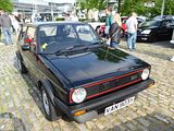 A popular classic now, this was a nice example of the first generation Golf GTi. The model was first seen at the Frankfurt Motor Show in 1975. The idea behind it was rather straightforward – take a basic-transportation economy car and give it a high-performance package, making it practical and sporty. It was one of the first small cars to adopt mechanical fuel injection, which meant that the 1588cc engine put out 110 bhp, a big increase on what was available in the regular Golf models, which, in conjunction with a light weight of just 810 kg, gave it a top speed of around 100 mph and a 0 – 60 time of 9 seconds, impressive figures in their day. Volkswagen initially built the GTI only for the home market of West Germany, but launched it onto the British market in 1977 in left-hand drive form, with a right-hand drive version finally becoming available in 1979 as demand and competition increased. Many regard the Golf GTI Mk1 as the first “hot hatch” on the market, it was in fact preceded by the Autobianchi A112 Abarth in 1971, although it would prove to be far more popular than the earlier car in the UK market since the A112 Abarth was never available in RHD. It also competed with a number of quick small saloons including the Ford Escort RS2000. When the Escort switched to front-wheel drive and a hatchback for the third generation model in 1980, Ford launched a quick XR3 model which was comparable to the Golf GTI in design and performance. The Golf GTI was among the first “hot hatch” with mass market appeal, and many other manufacturers since have created special sports models of their regular volume-selling small hatchbacks. Within a few years of its launch, it faced competitors including the Fiat Ritmo, Ford Escort XR3/XR3i, Renault 5 GT Turbo and Vauxhall Astra/Opel Kadett GTE. A five speed gearbox became available in 1981 and in 1982, the engine was enlarged to 1780cc, which increased the available power a little. The car proved popular in the UK from the outset, with over 1500 being sold in 1979. Although the subsequent recession saw new car sales fall considerably during 1980 and 1981, sales of the Golf GTI reached nearly 5,000 in 1981. This also came in spite of the arrival of a popular new British-built competitor – the Ford Escort XR3. By 1983, the GTI accounted for more than 25% of total Golf sales (some 7,000 cars).