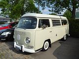 There was one example here of the Type 2 “Bus”, the second generation of VW’s versatile van range, first seen in late 1967. It was built in Germany until 1979. In Mexico, the Volkswagen Kombi and Panel were produced from 1970 to 1994. Models before 1971 are often called the T2a (or “Early Bay”), while models after 1972 are called the T2b (or “Late Bay”). This second-generation Type 2 lost its distinctive split front windshield, and was slightly larger and considerably heavier than its predecessor. Its common nicknames are Breadloaf and Bay-window, or Loaf and Bay for short. At 1.6 litres and 47 bhp DIN, the engine was also slightly larger. The battery and electrical system was upgraded to 12 volts, making it incompatible with electric accessories from the previous generation. The new model also did away with the swing axle rear suspension and transfer boxes previously used to raise ride height. Instead, half-shaft axles fitted with constant velocity joints raised ride height without the wild changes in camber of the Beetle-based swing axle suspension. The updated Bus transaxle is usually sought after by off-road racers using air-cooled Volkswagen components. The T2b was introduced by way of gradual change over three years. The first models featured rounded bumpers incorporating a step for use when the door was open (replaced by indented bumpers without steps on later models), front doors that opened to 90° from the body, no lip on the front guards, unique engine hatches, and crescent air intakes in the D-pillars (later models after the Type 4 engine option was offered, have squared off intakes). The 1971 Type 2 featured a new, 1.6 litre engine with dual intake ports on each cylinder head and was DIN-rated at 50 bhp. An important change came with the introduction of front disc brakes and new roadwheels with brake ventilation holes and flatter hubcaps. Up until 1972, front indicators are set low on the nose rather than high on either side of the fresh air grille – giving rise to their being nicknamed “Low Lights”. 1972’s most prominent change was a bigger engine compartment to fit the larger 1.7- to 2.0-litre engines from the Volkswagen Type 4, and a redesigned rear end which eliminated the removable rear apron and introduced the larger late tail lights. The air inlets were also enlarged to accommodate the increased cooling air needs of the larger engines. In 1971 the 1600cc Type 1 engine as used in the Beetle, was supplemented with the 1700cc Type 4 engine – as it was originally designed for the Type 4 (411 and 412) models. European vans kept the option of upright fan Type 1 1600 engine but the 1700 Type 4 became standard for US spec models. In the Type 2, the Type 4 engine, or “pancake engine”, was an option for the 1972 model year onward. This engine was standard in models destined for the US and Canada. Only with the Type 4 engine did an automatic transmission become available for the first time in the 1973 model year. Both engines were 1.7 L, DIN-rated at 66 bhp with the manual transmission and 62 bhp with the automatic. The Type 4 engine was enlarged to 1.8 L and 67 bhp DIN for the 1974 model year and again to 2.0 L and 70 bhp DIN for the 1976 model year. The two-litre option appeared in South African manufactured models during 1976, originally only in a comparably well-equipped “Executive” model. The 1978 2.0 L now featured hydraulic valve lifters, eliminating the need to periodically adjust the valve clearances as on earlier models. The 1975 and later U.S. model years received Bosch L-Jetronic electronic fuel injection as standard equipment; 1978 was the first year for electronic ignition, utilising a hall effect sensor and digital controller, eliminating maintenance-requiring contact-breaker points. As with all Transporter engines, the focus in development was not on power, but on low-end torque. The Type 4 engines were considerably more robust and durable than the Type 1 engines, particularly in Transporter service. In 1972, exterior revisions included relocated front turn indicators, squared off and set higher in the valance, above the headlights. Also, square-profiled bumpers, which became standard until the end of the T2 in 1979, were introduced in 1973. Crash safety improved with this change because of a compressible structure behind the front bumper. This meant that the T2b was capable of meeting US safety standards for passenger cars of the time, though not required of vans. The “VW” emblem on the front valance became slightly smaller. Later model changes were primarily mechanical. By 1974, the T2 had gained its final shape. Very late in the T2’s design life, during the late 1970s, the first prototypes of Type 2 vans with four-wheel drive (4WD) were built and tested.