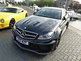 Available only in Coupé bodystyle, the C 63 AMG Black Series includes a modified version of C 63 AMG M156 V8 engine now generating a maximum power output of 517 PS (510 bhp) at 6,800 rpm and 620 Nm (457 lb/ft) of torque at 5,000 rpm. Performance figures include a 0–100 km/h (62 mph) acceleration time of 4.2 seconds and a top speed of 300 km/h (186 mph). Other notable features include 255/35 ZR 19 and 285/30 ZR 19 tyres, black diffuser insert shared with the SLS AMG GT3, twin tailpipes finished in chrome, AMG sports suspension with AMG rear axle differential lock, three-stage ESP, two AMG sports bucket seats, black DINAMICA microfibre upholstery on the centre panels of the seats and doors, omission of the rear bench seat (single rear seats available as option), AMG performance steering wheel upholstered in either Nappa leather or the Dinamica microfibre, steering wheel rim having flattened top and bottom sections along with aluminium shift paddles on the steering column for manual gear changes, red seat belts and red contrasting top stitching on the steering wheel, on the seats, door centre panels, armrests, on the doors, the centre console and on the shift lever gaiter along with three autonomous round dials has a three-dimensional TFT colour display. The AMG Track Package includes 255/35 R 19 front and 285/30 R 19 rear sports tyres from Dunlop, active rear-axle transmission cooling with radiator in the rear apron. The AMG Aerodynamics package includes carbon fibre flics on front apron, carbon-fibre functionally tuned front splitter and a fixed carbon-fibre rear aerofoil with an adjustable blade. China and US models went on sale in March 2012. Sales of Japanese version began in October 2011 in limited quantities (50 units produced), with delivery began in the Spring of 2012. Mercedes initially planned to build only 650 units, but after the sales success 800 units were produced.